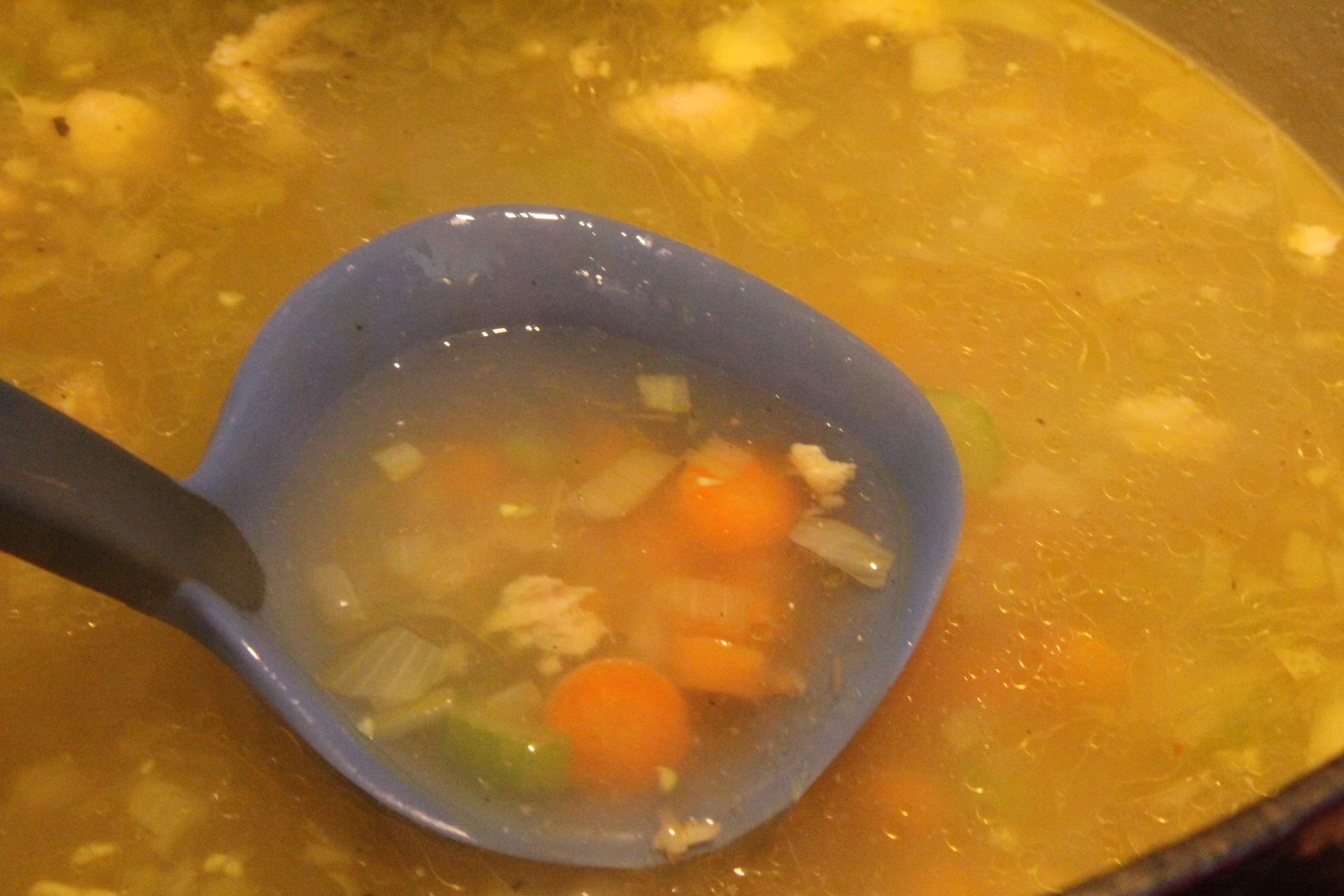 3 Quarts of chicken stock or chicken broth. This could be homemade from scratch or with chicken soup base, or store-bought. I made it with 3 TBS Chicken Soup Base mixed in 4 C of boiling water and then added an additional 8 C of water to the soup for a total of 3 quarts.