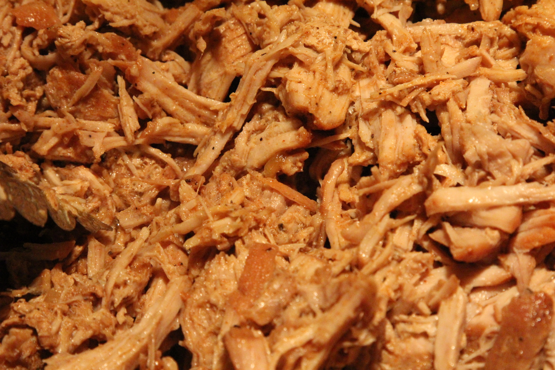 Once all the meat is shredded, you can adjust the seasoning if needed. I added a little Salt and pepper and about 1/2 C of water and mixed up the meat so it was all combined and moist.