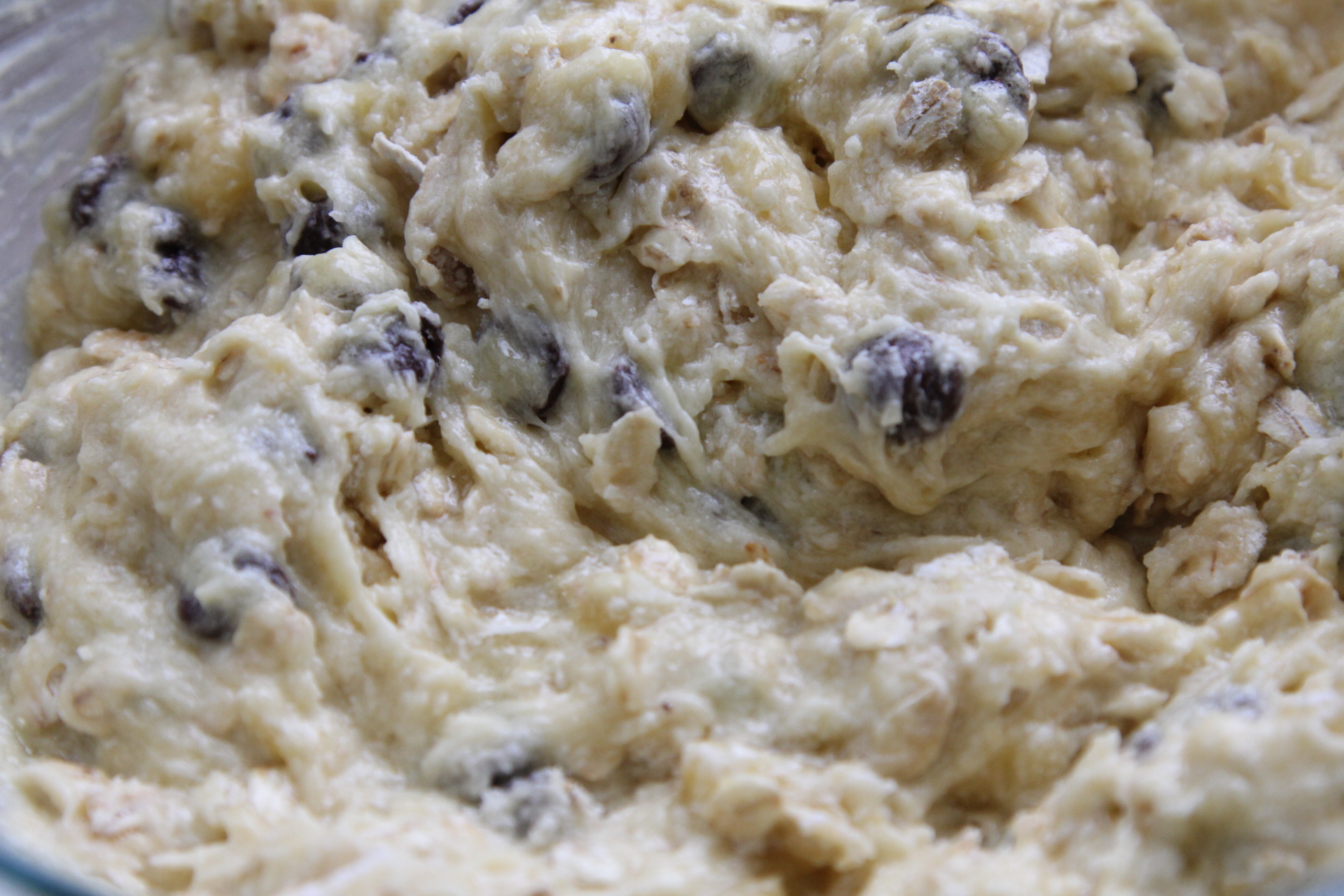 In a separate bowl, combine the Flour, Baking soda, Oats, Chocolate Chips, and Nuts if using.