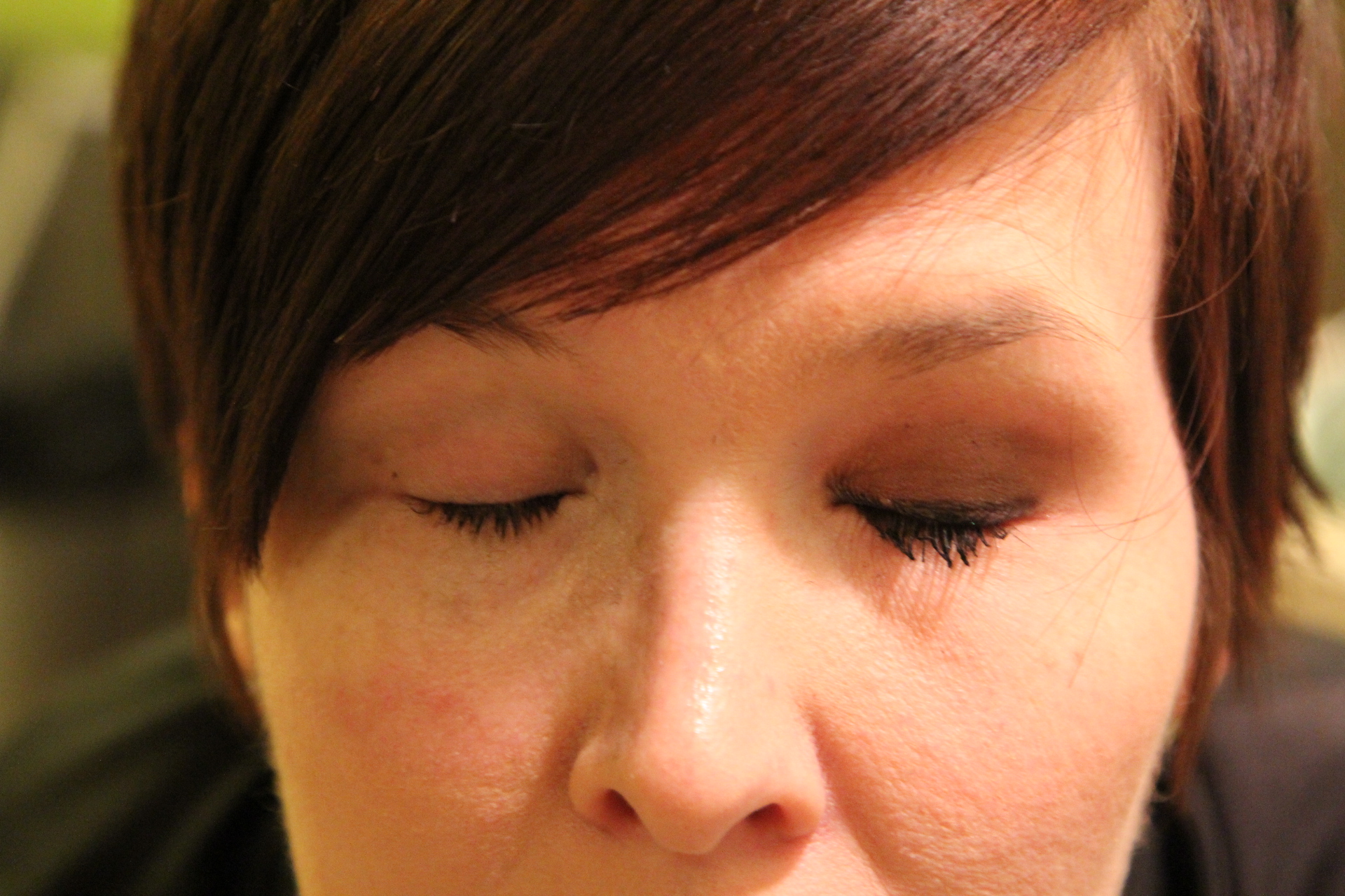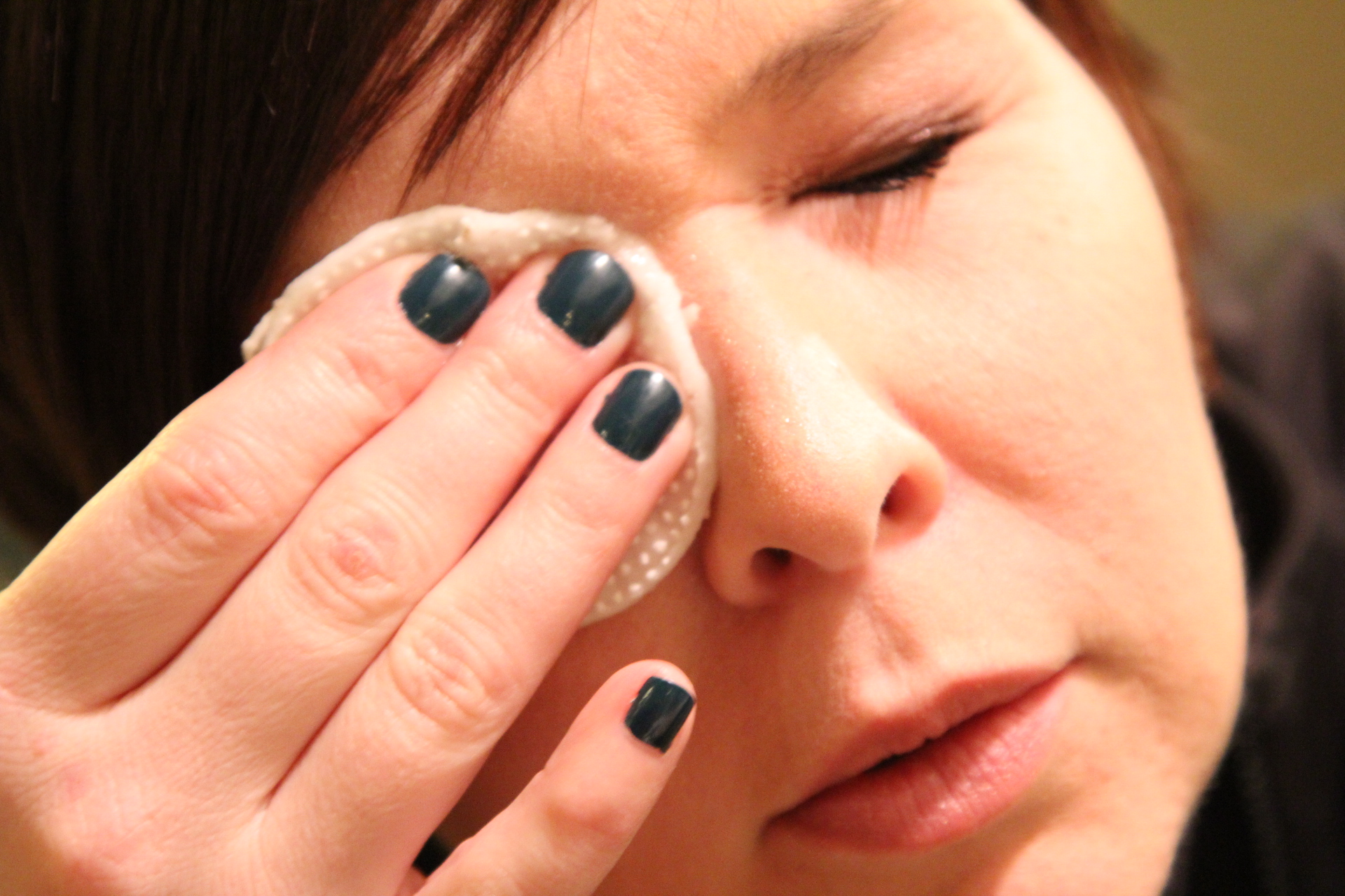And here’s how it worked on me. Keep in mind, I had on fiber lash mascara, waterproof eyeliner, eye shadow primer and eye shadow. Yes, I like makeup 🙂 I used one pad, squeezed out excess liquid back into the container, then let the soft side of the pad sit on my eye lid for 15-20 seconds. Then I gently wiped, using the soft part of the pad to remove the eye makeup. As I said before, the textured side of the pad is great for a little exfoliation of the face after you use the soft side to cleanse.