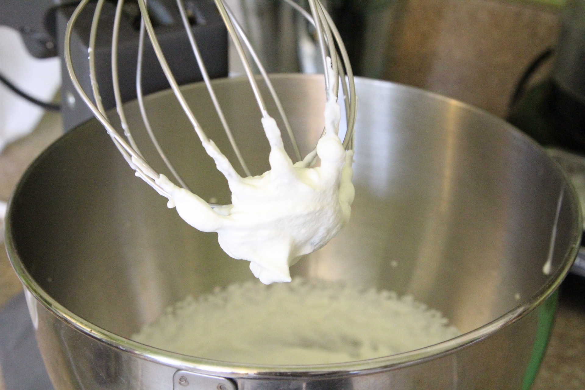 If using heavy whipping cream instead of cool whip, whip your cream with 1 teas sugar until stiff peaks form using the whisk attachment or beaters. Place mixing bowl in the fridge until ready to use it.
