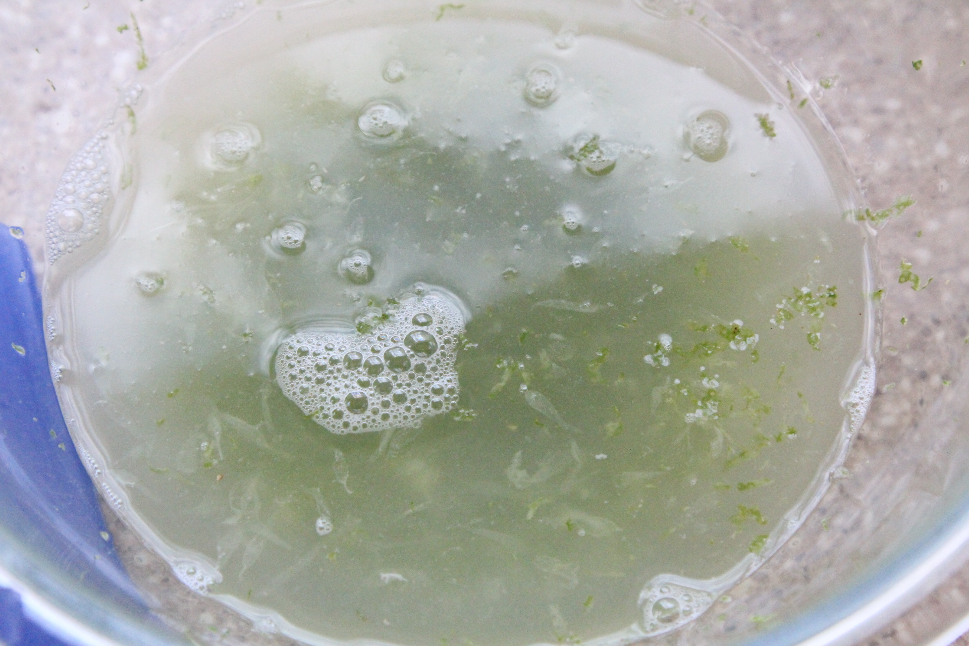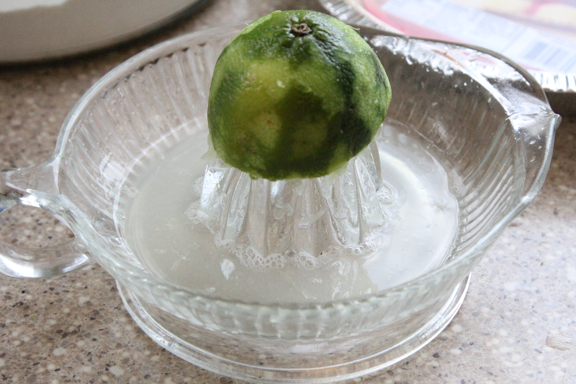 Zest and juice your 3 limes in a medium bowl. I recommend using some sort of juicer to help you really get your money’s worth of lime juice. My lovely glass juicer is an antique and it’s so handy! Lime pulp is a good thing, include it if you can.