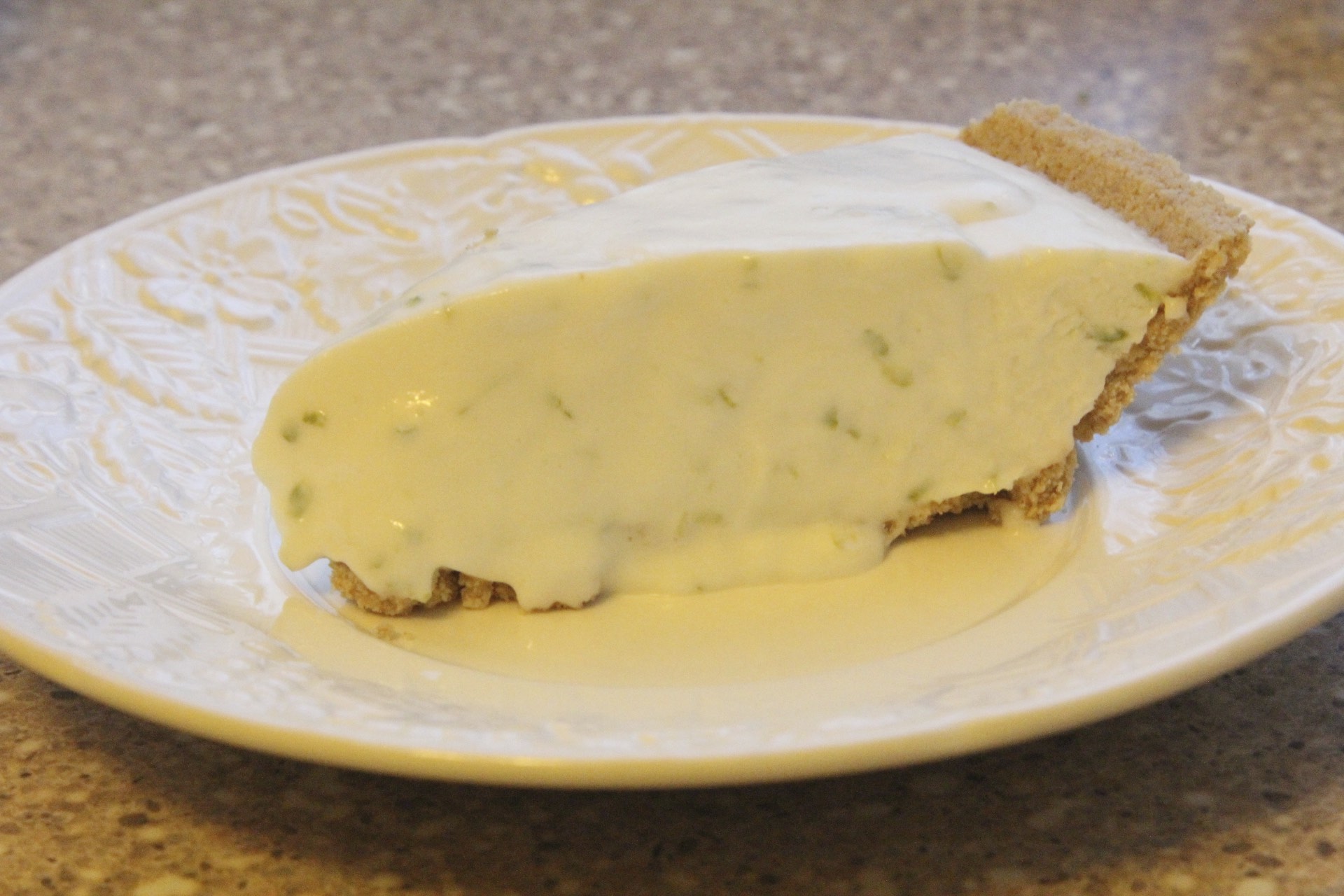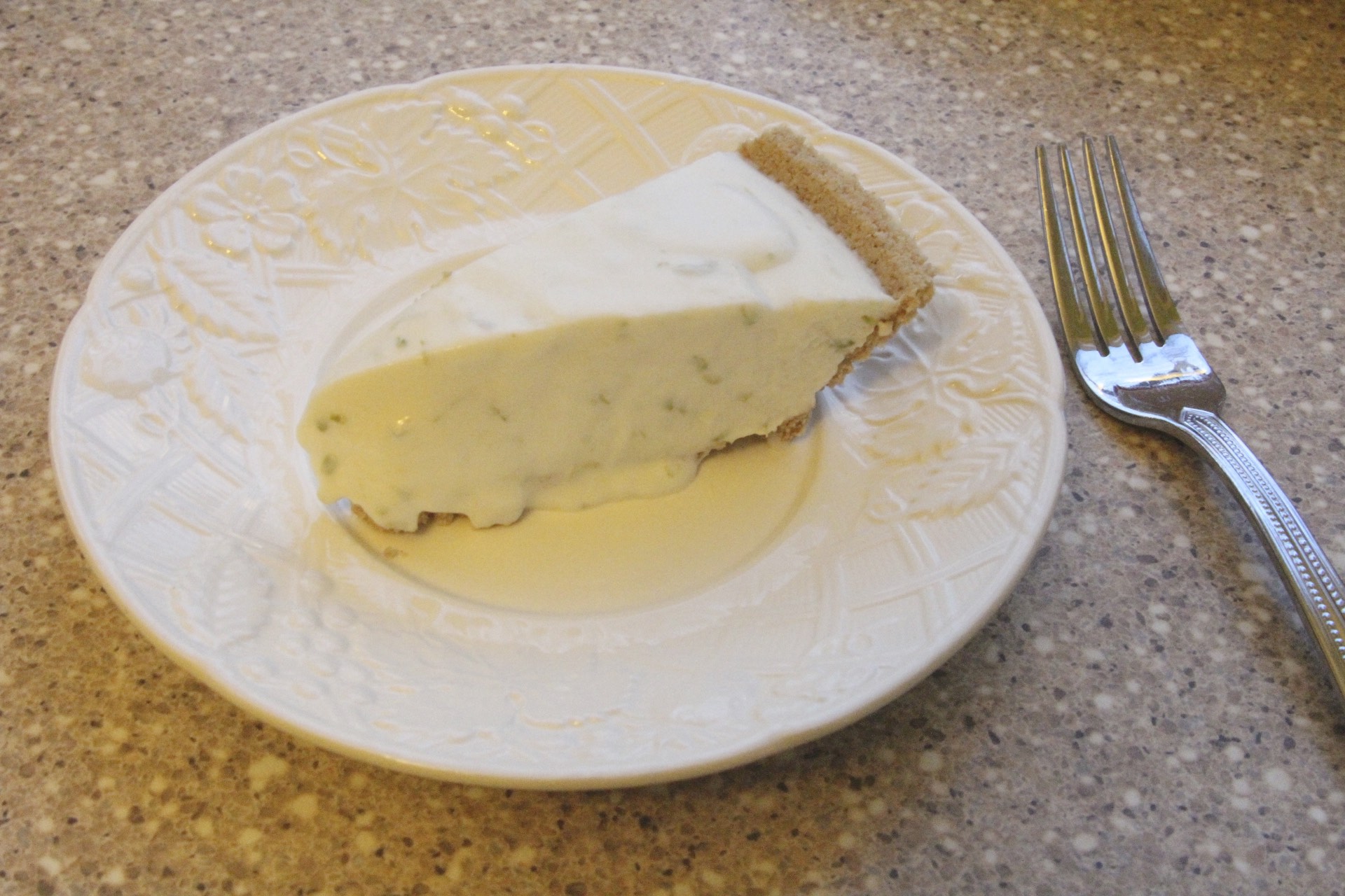 If you like, you could put a half lime wedge on each slice as garnish. I didn’t bother since we just wanted to dive right into the pie.