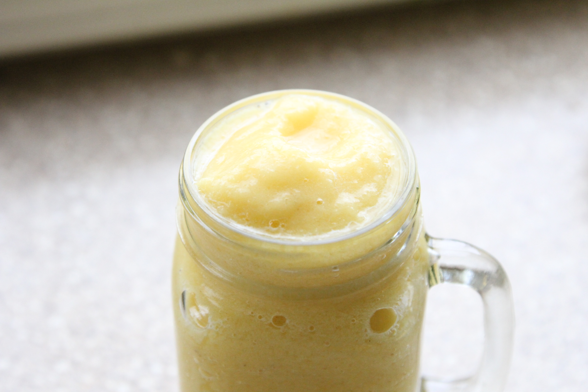My oldest loves mangos. She’s always wanting me to pick some up at the store. Although they are not my favorite fruit, they take me back to Mexico on our honeymoon. I remember each day a fresh fruit basket would be waiting in our room and there were always plenty of mangos. Since we enjoy smoothies a lot in our house, my oldest wanted a mango smoothie so that’s where this little smoothie idea came from. I combined the mango with fresh pineapple and frozen banana as well as a bit of OJ for liquid and it tastes wonderful! I didn’t measure anything when I threw it in the blender so bear with me on the amounts as I’m just estimating. I’m trying to cut down on my sugar intake and I know I’m not alone. Fruit smoothies have natural sugar from the fruit which is way better than processed sugar, but it can still add calories and mess up your sugar level so this smoothie is not a daily smoothie in our house. It’s probably a once a week type smoothie or even less frequently. You could also help lower the sugar in this smoothie with using reduced sugar orange juice.
