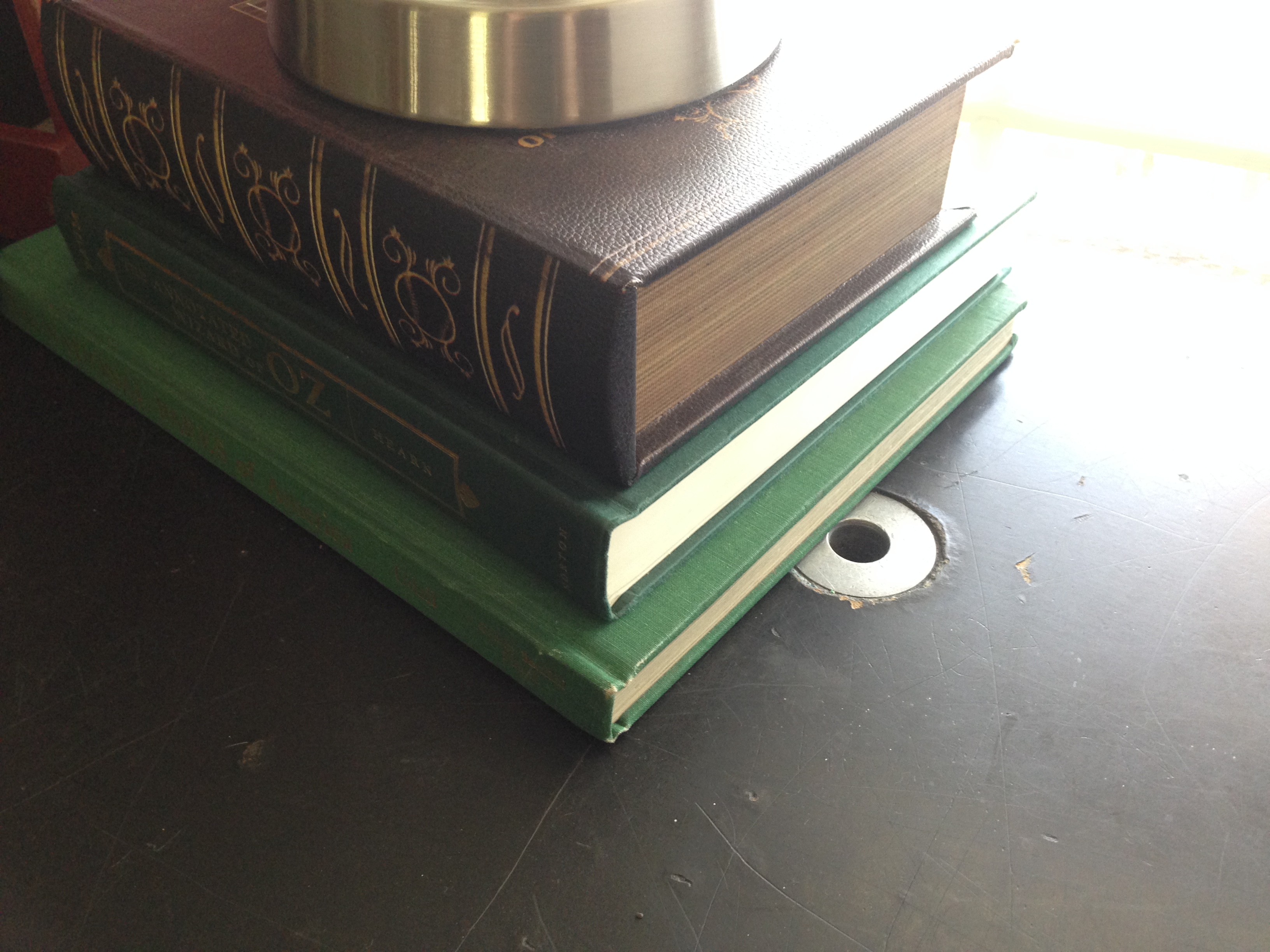 Big “book” under lamp is actually a box that opens up – Hobby Lobby – $10.