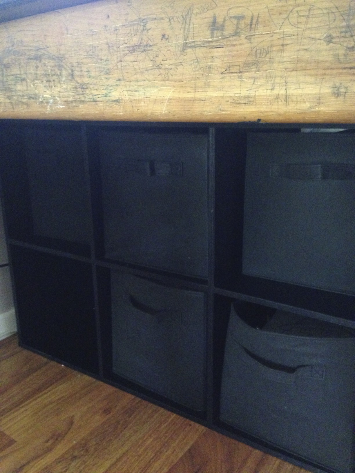Black ClosetMaid 6 Cube Organizer (below desk) – Target – already owned it, but it was around $35 on sale.