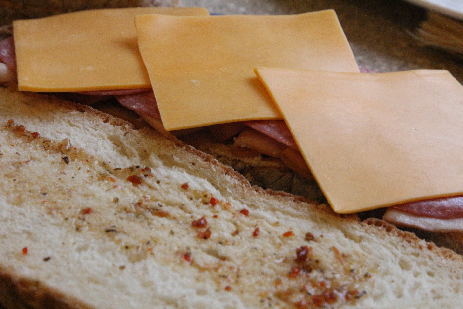 Good hearty sliced bread like sour dough, French, or Italian. You could also use loaves of bread, like Jimmy Johns Day Old Bread and press them. The Italian Turano bread I used was from Aldi.