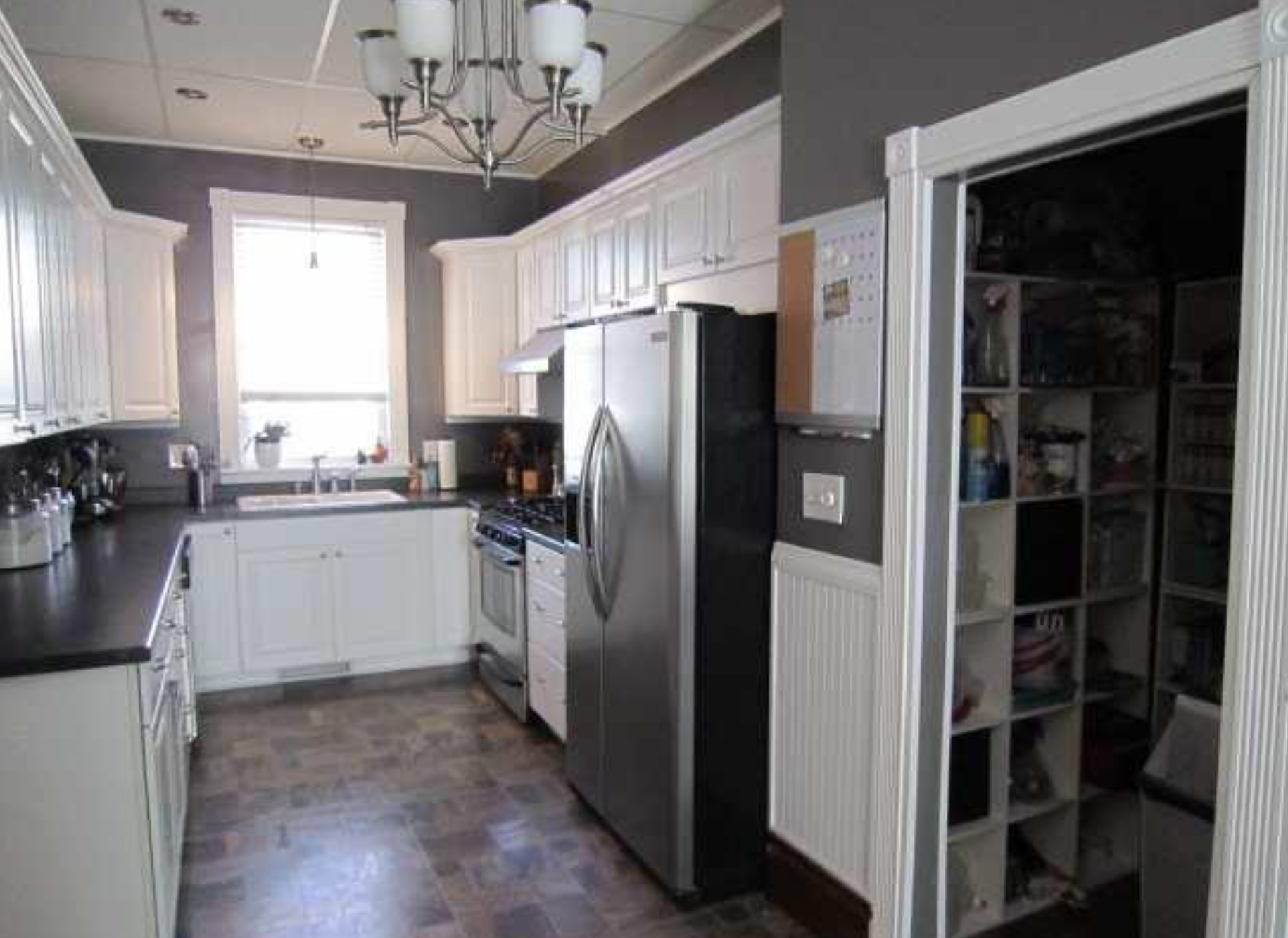 A few weeks ago, I made panini sandwiches for supper. Each and every time I make these warm grilled wonders, we are taken back to our kitchen remodel years ago. We laughed about how we ate panini’s at least 3-4 times a week, sometimes more! We lived in a nearly 100-year-old house at the time (it turned 100 two years ago)! It was our first house and will always be remembered with so much love and memories of the blood, sweat and tears we poured into it. I knew from the second I first walked through the heavy front door that it was going to be our house! I fell in love with the tall ten foot ceilings, original woodwork, stained glass windows, pocket doors, ornate staircase, and all the quirks and charm that it carried through the years. We were lucky that it was livable and most of the woodwork was in original condition. The kitchen had been remodeled in the 80’s sometime and we knew that would be a big project that we would tackle one day. It had wood paneling covering one wall, a lovely faux brick linoleum floor, old appliances, and this lovely drop ceiling with fluorescent lighting. We lived with the old kitchen and all its brown beauty for about four years before we started remodeling the kitchen. We had already remodeled our upstairs bathroom all on our own and the help of my mom and dad, which included removing a second kitchen and expanding the bathroom to about three times its size, updating all the electrical and pluming, gutting and building new walls and finishing the drywall, building a custom shower, tiling the floor and shower, and who knows what else I’m forgetting! With the help of my mom and dad, we knew the kitchen project would be do-able, it would just take more time and more money! I was on maternity leave with our second daughter and had been out to dinner with some friends and I came home to find my husband had started demo on the kitchen. I guess we were starting our kitchen remodel 🙂