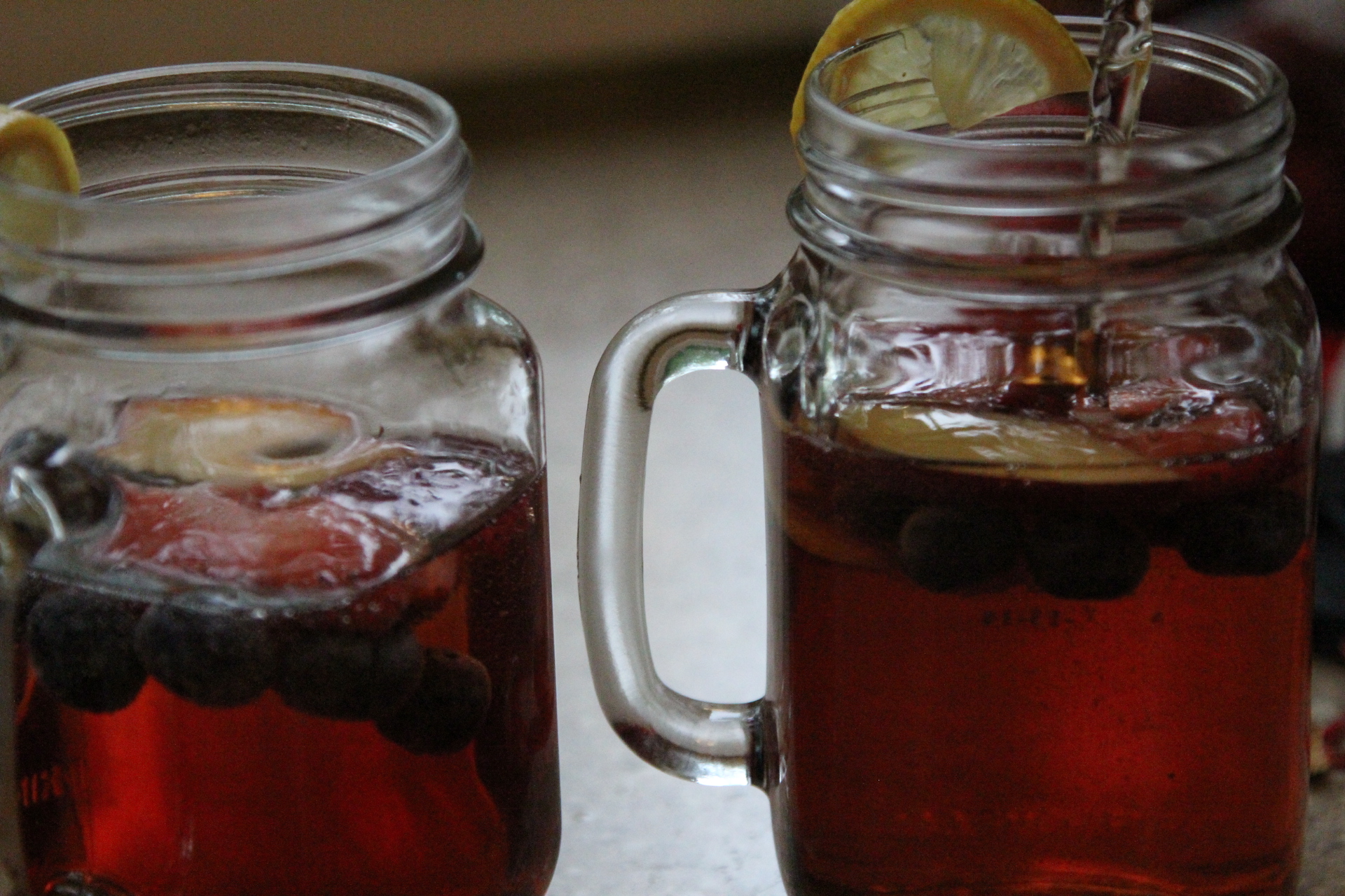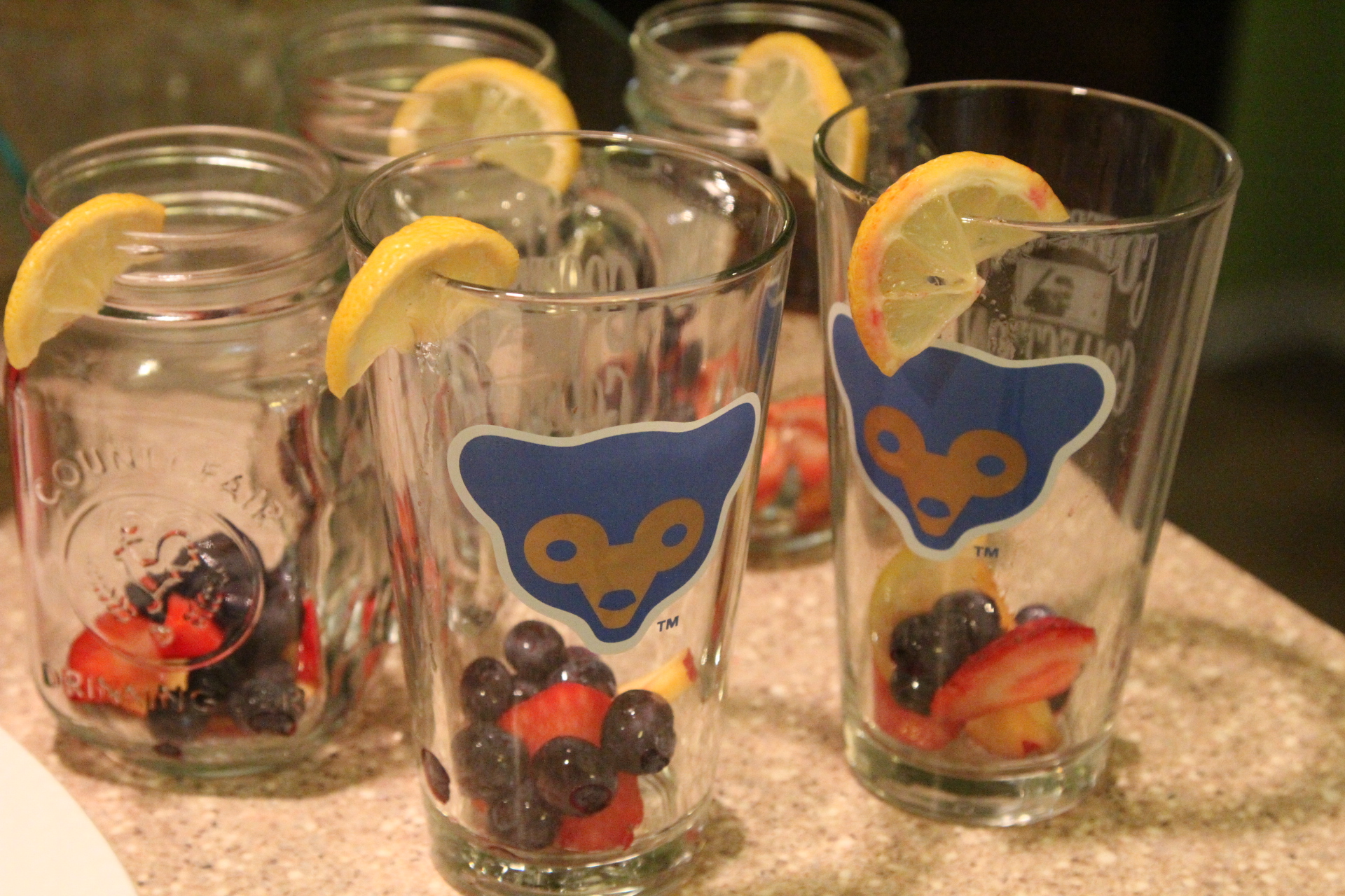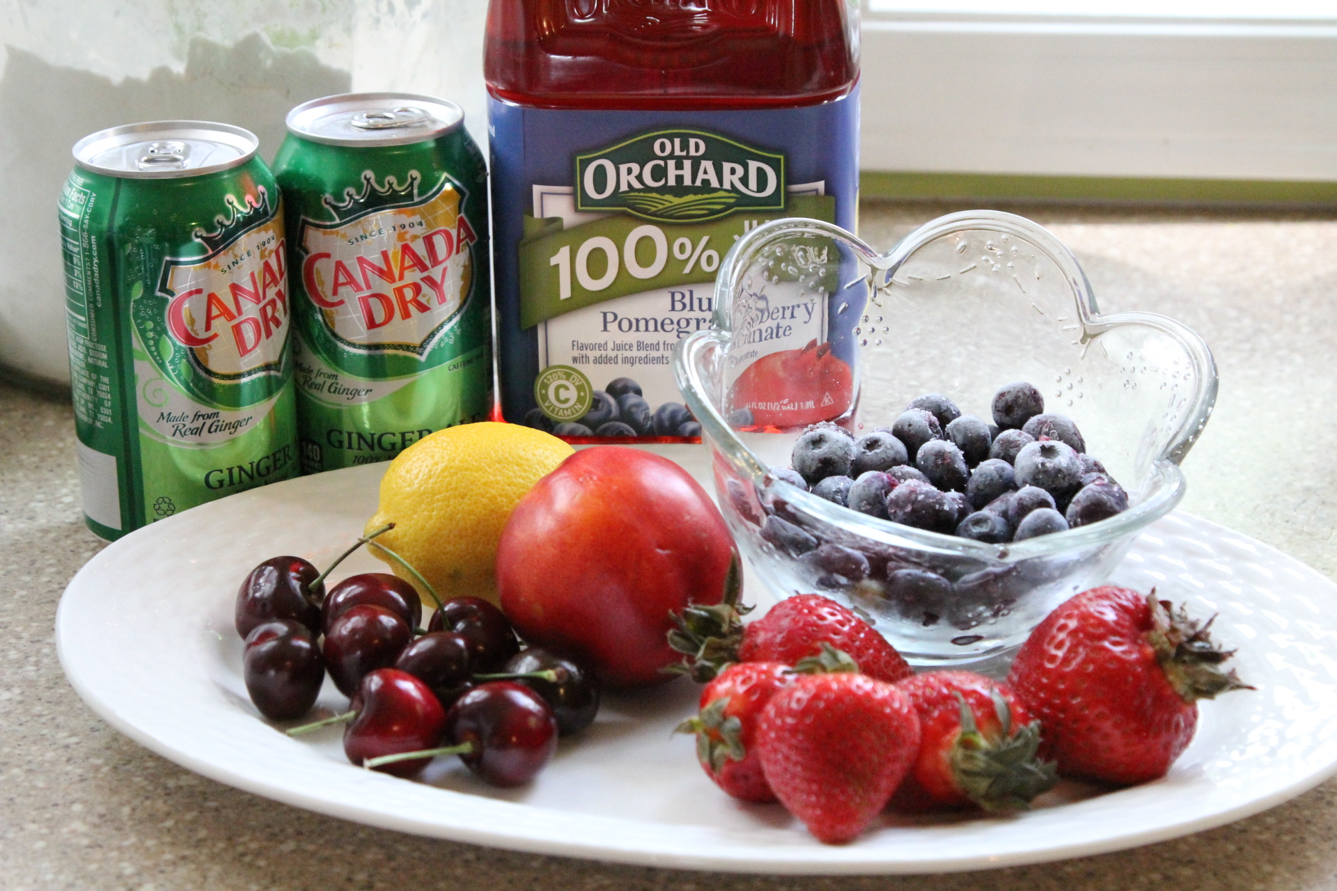 Fruit of your choice – I used sliced lemon, frozen blueberries, sliced strawberries, sliced nectarine, and sweet cherries with pits removed.