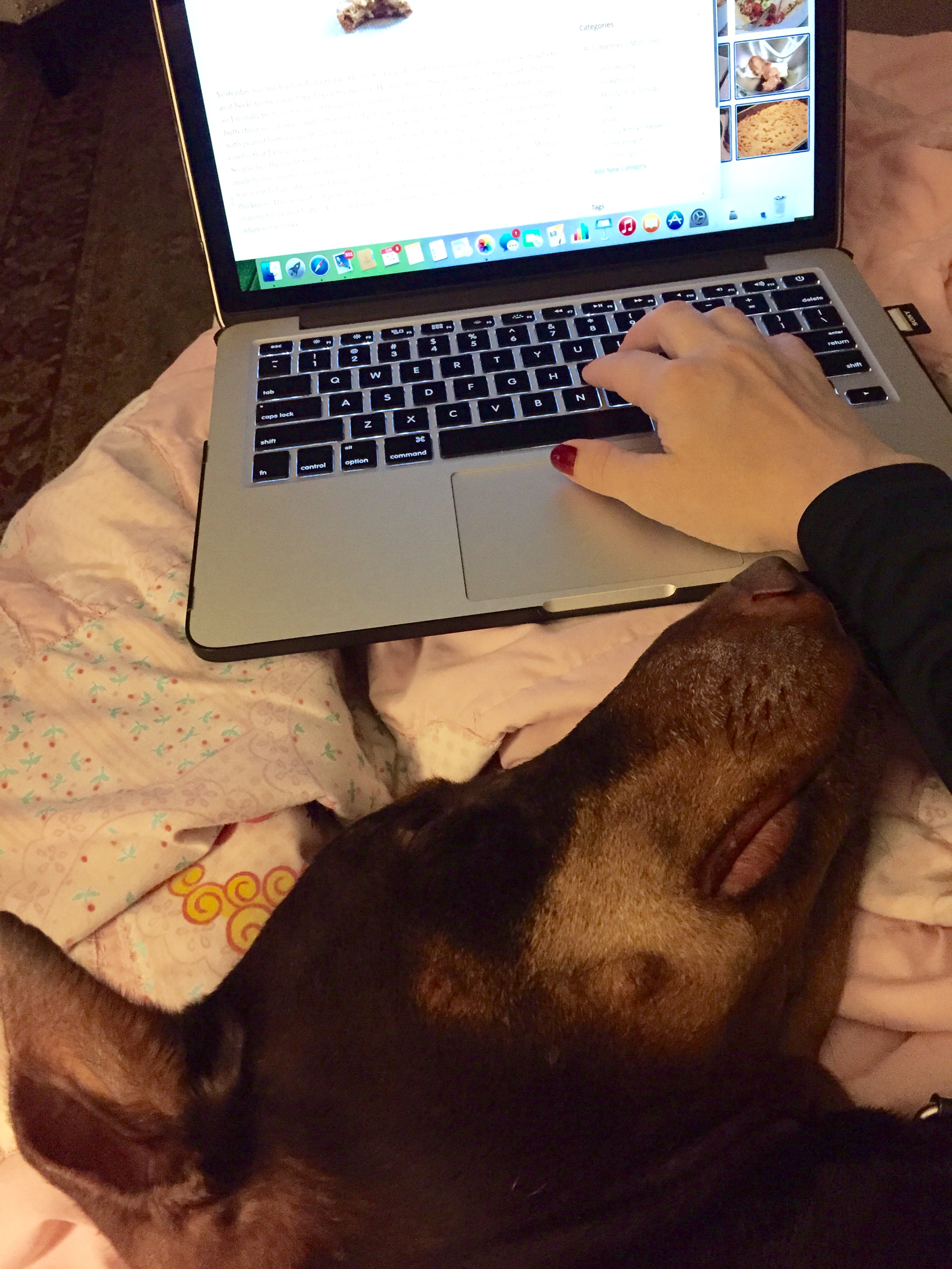 Here’s my little writing buddy as I type this up. Talk about a big baby momma’s boy! I love this dog so much!
