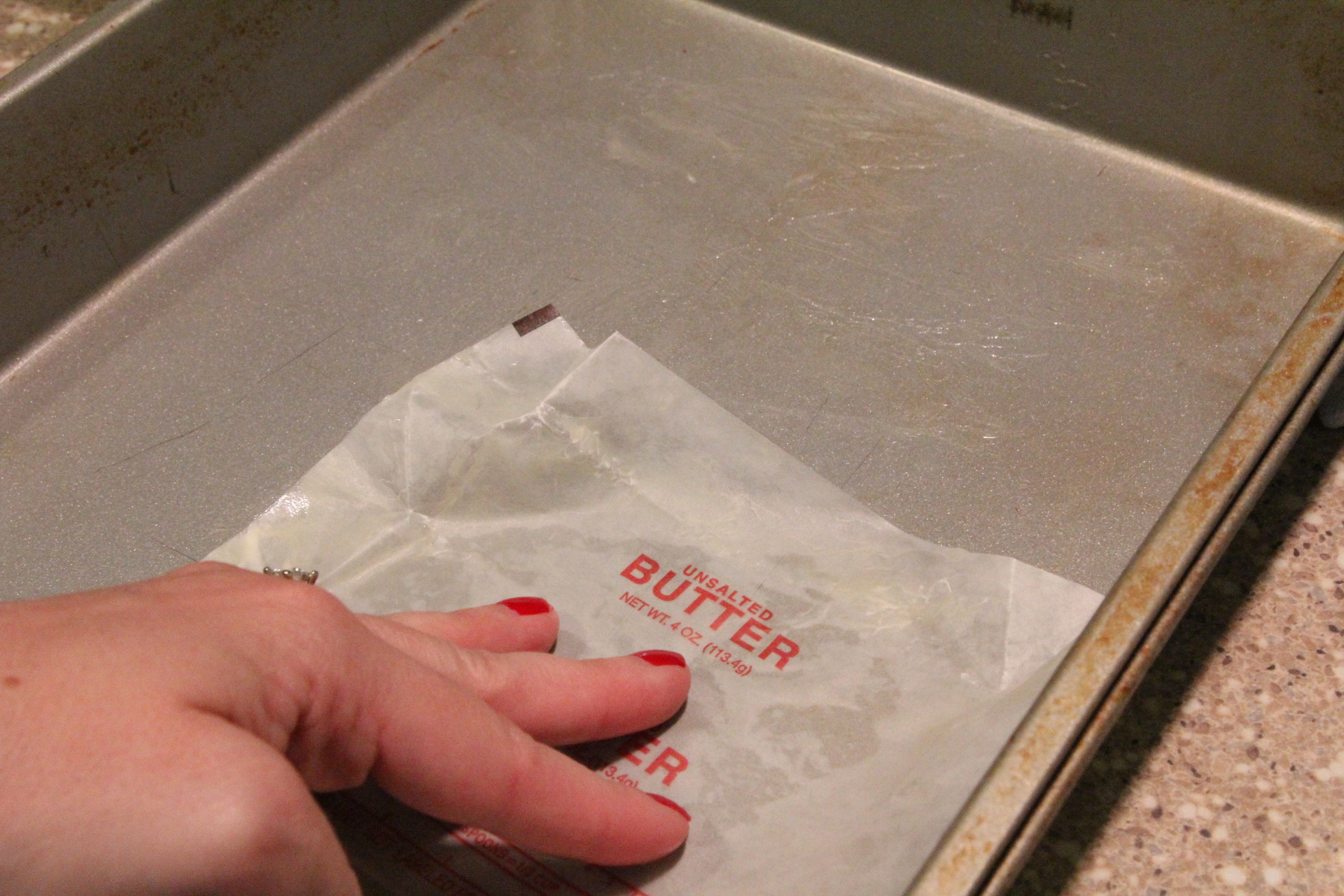 I use the butter wrapper to grease my pan.
