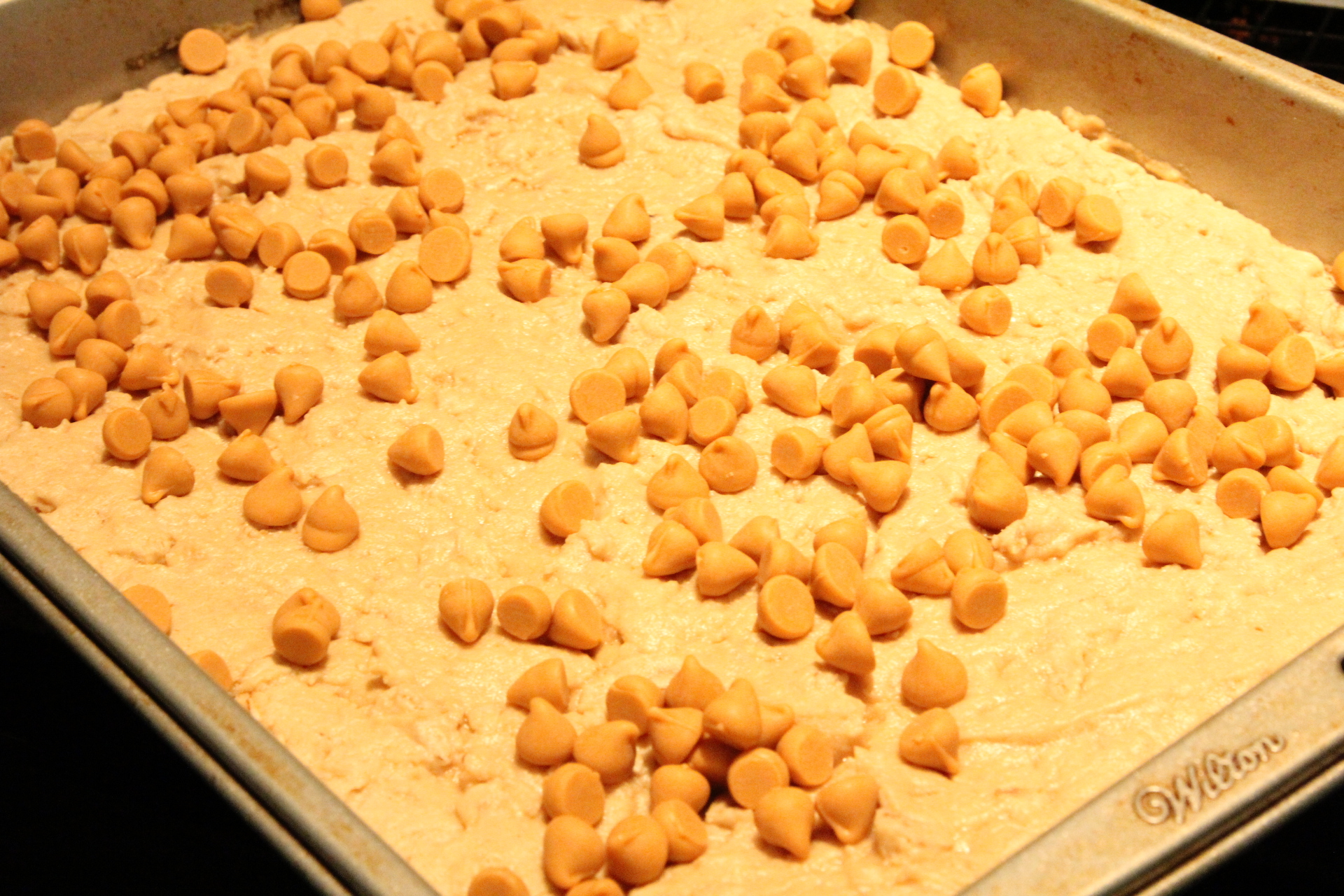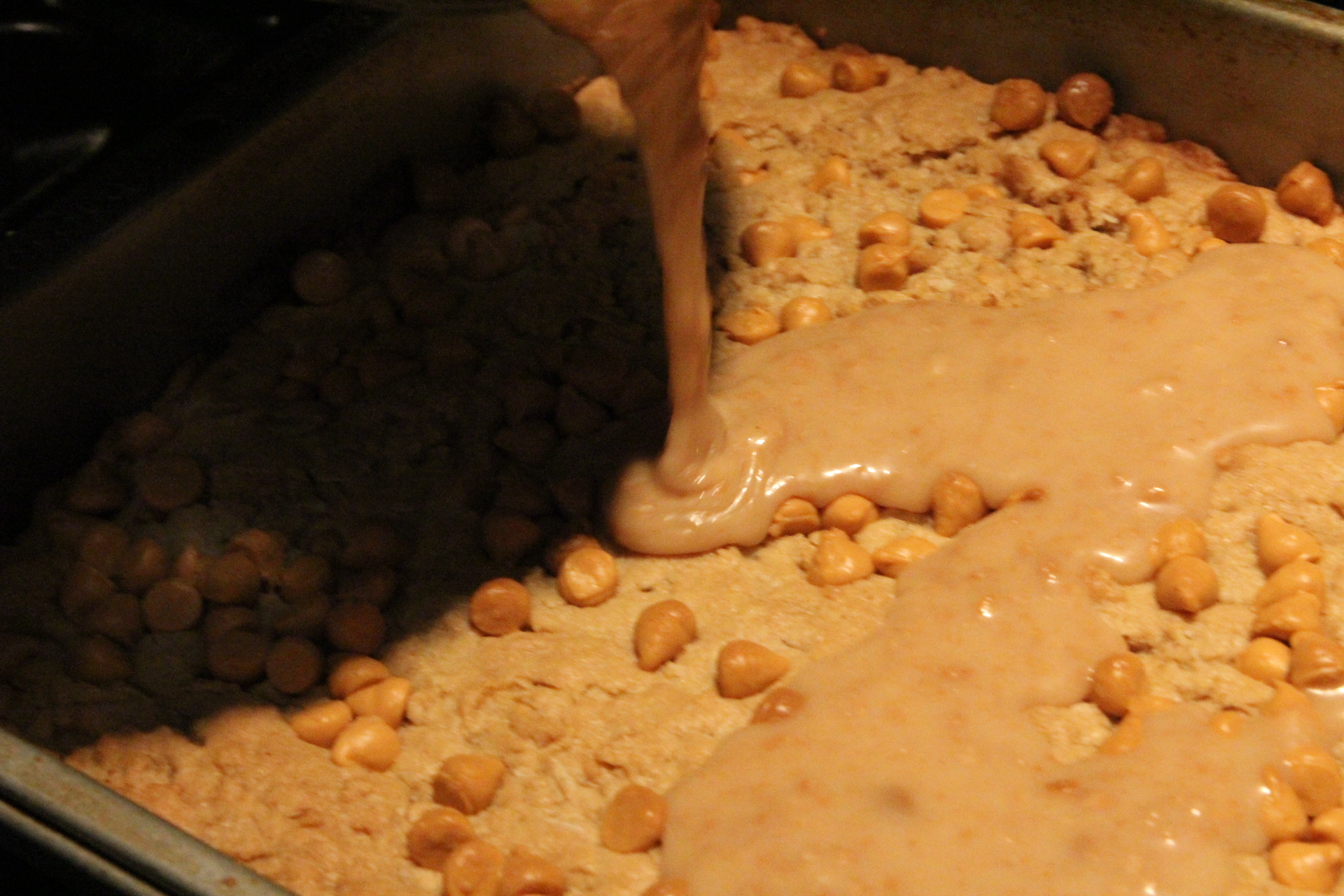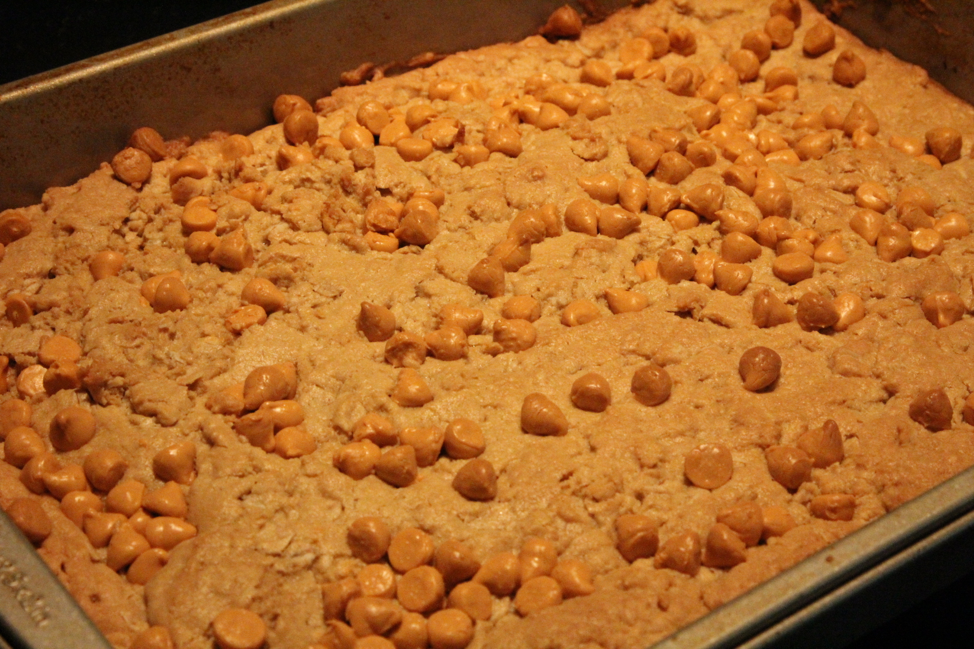 Sprinkle the butterscotch chips over the bars.
