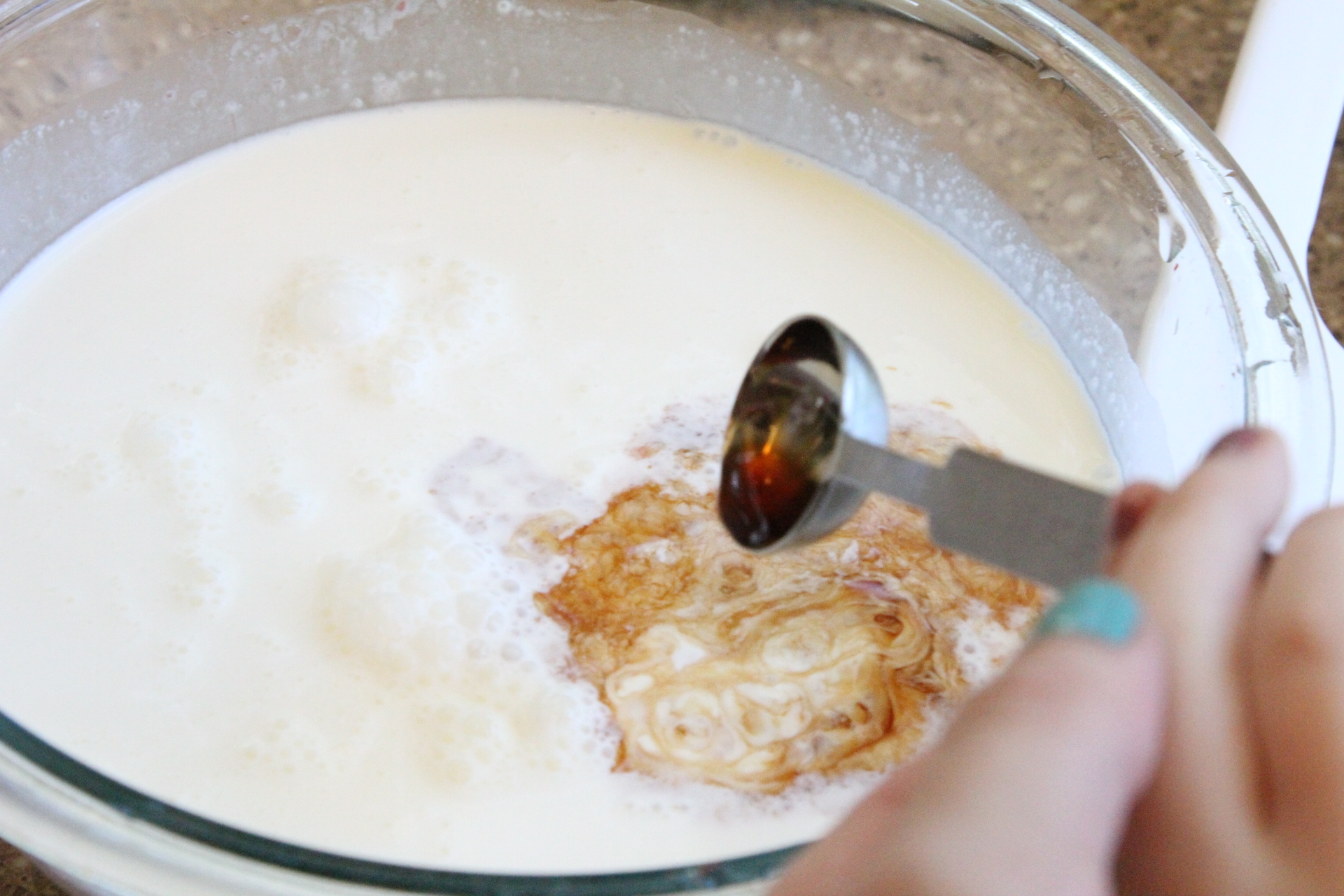 Pour in the vanilla and stir.