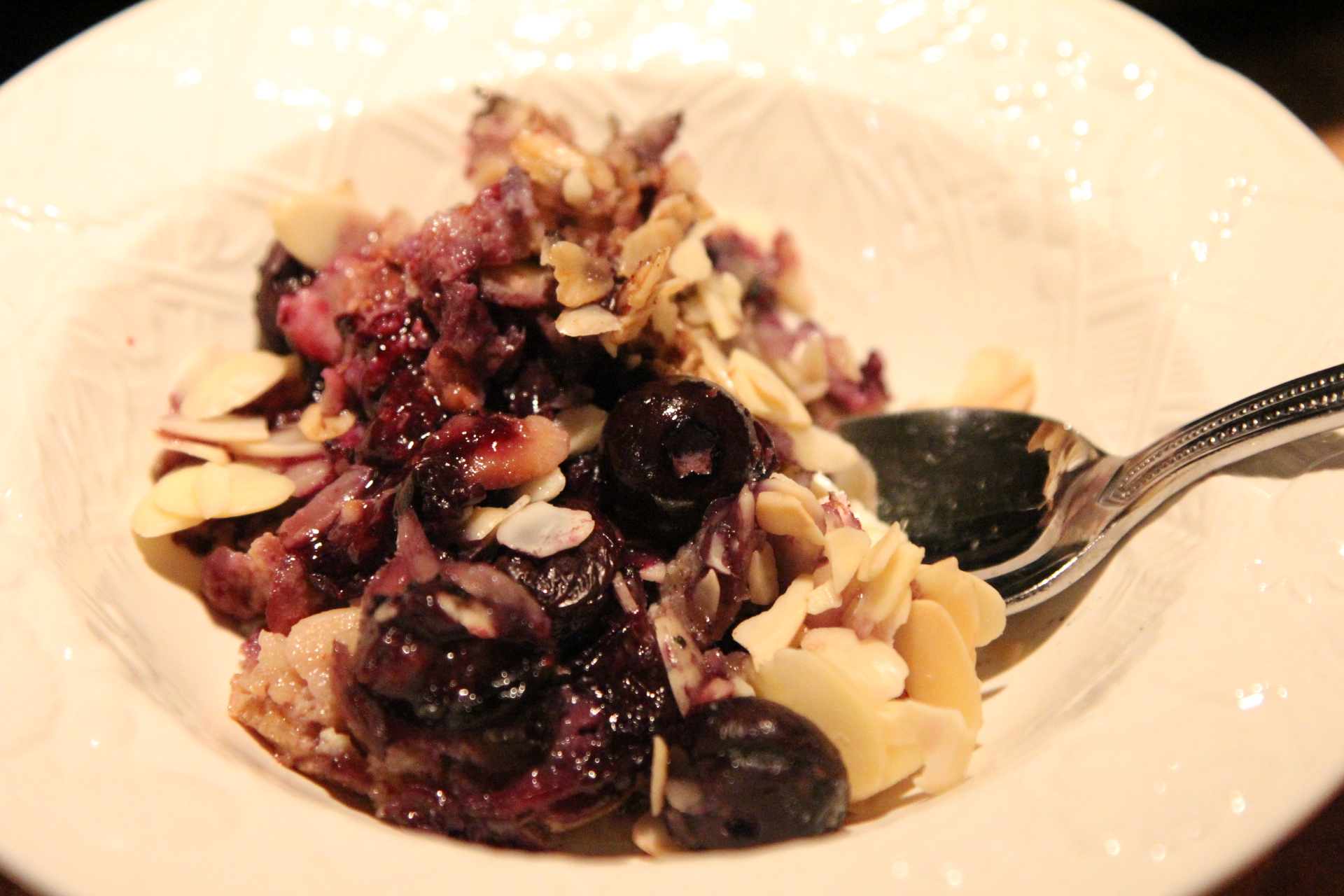 Sprinkle remaining 1/2 C sliced almonds on top.