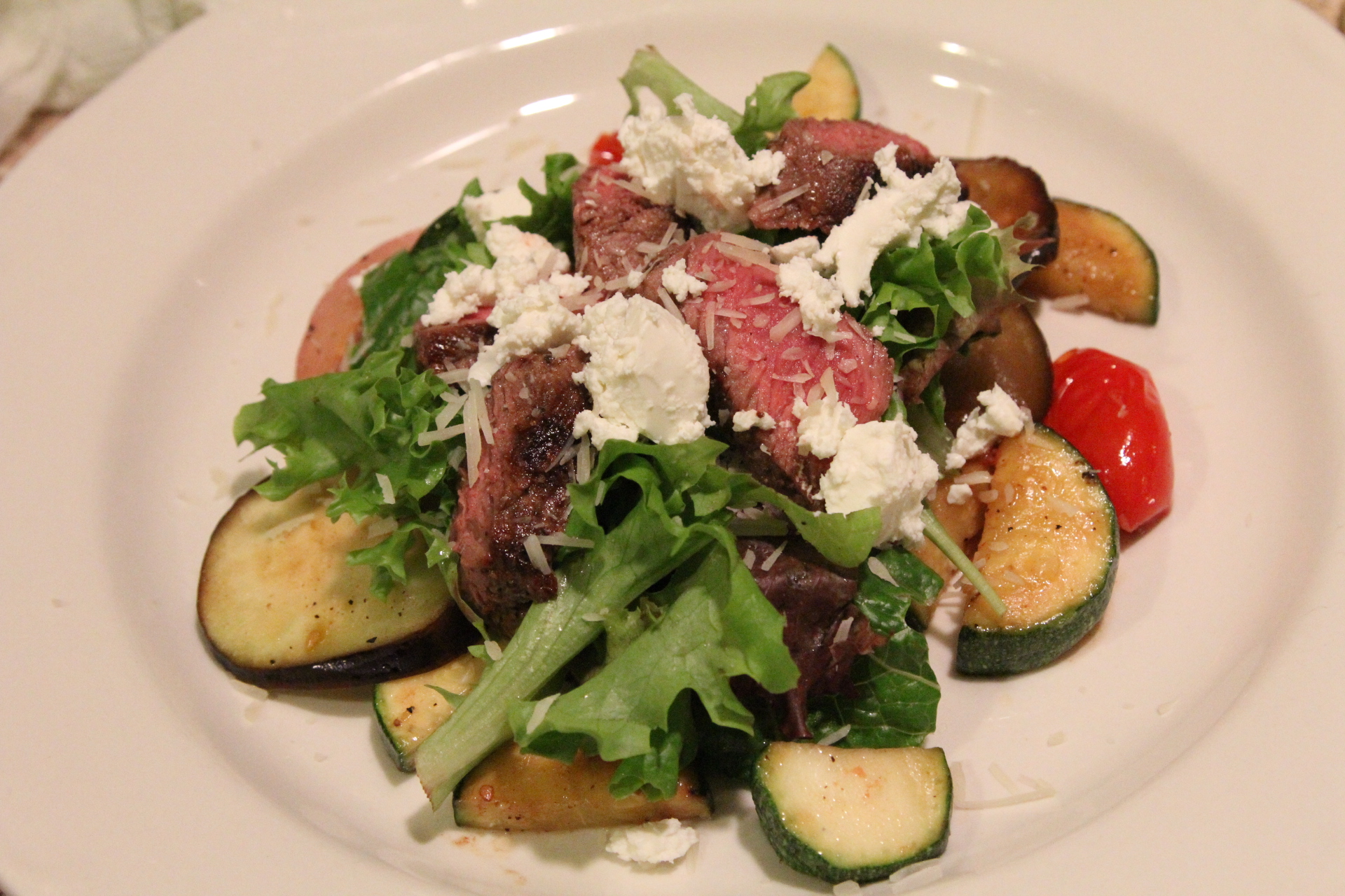 I hope your family likes it! I had it the next day as leftovers, just heated up the veggie mixture, threw some salad on there. Heated a little of the leftover steak, added goat cheese and a drizzle of balsamic and it was still so yummy! Trying to balance out all that ice cream I ate this summer!
