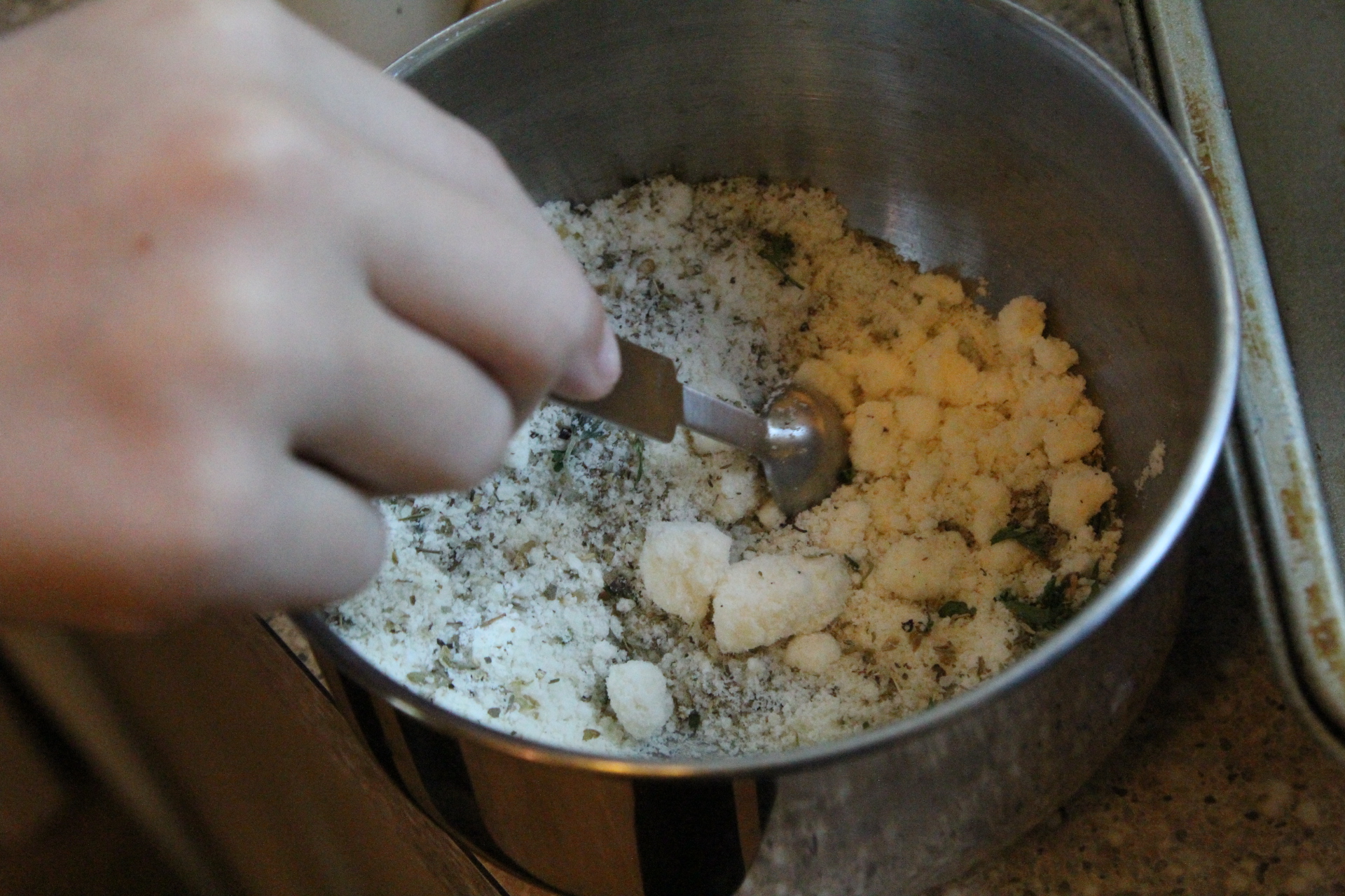 Combine all the spices and cheese in a bowl.