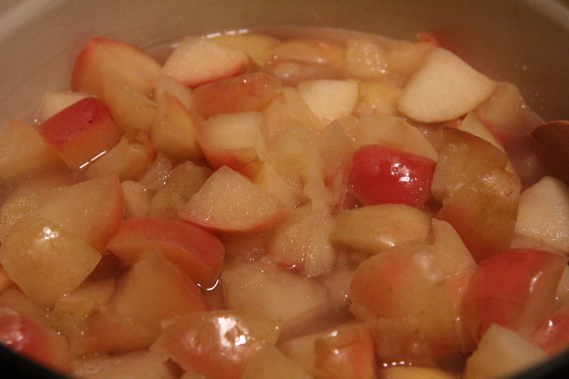 Add apple slices and water to a large pot. Bring to a boil and boil for 10 minutes. Reduce heat to simmer for another 15-20 minutes until all apples are tender.