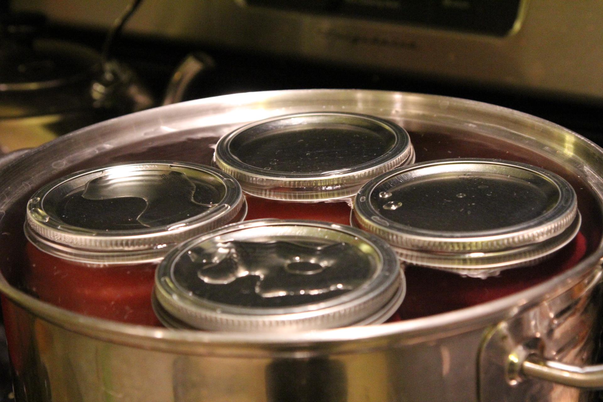 Bring the water to a boil. Boil for 10 minutes and then carefully remove each jar from the pot and set aside. Be careful to not disturb the lid. You may hear a pop during the boiling process or soon after. Let the jars sit for at least 12 hours and then check the seals to make sure all are sealed. Lid should be concave and the bubble should not be up.