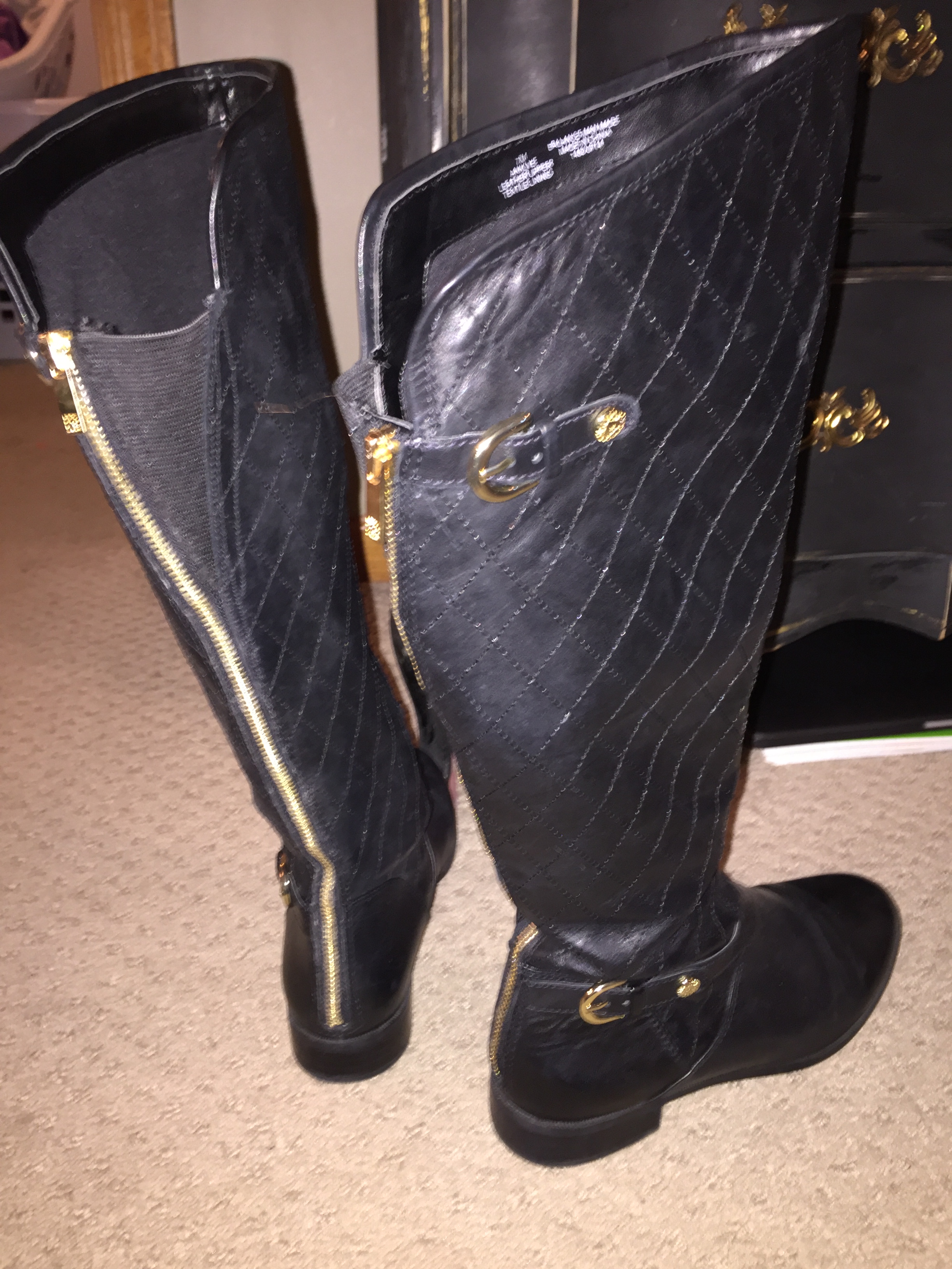Have you ever had an online purchase go wrong? I love to shop online. I’d much rather shop from my comfy couch than have to deal with driving around to stores and dealing with crowds and barren shelves around the holidays. Amazon Prime is basically my shopping assistant! I’ve bought shoes online before usually after trying them on somewhere in person first and then shopping online for a better deal, or maybe a different color. I’ve bought shoes online before never ever trying them on and usually they work out. Usually they fit and I don’t have any trouble. Well, this last time, I guess I learned my lesson. I just can’t do blind shoe shopping online any longer. Blind meaning never trying on first. I thought that I needed a new pair of tall black boots. I thought I needed . . . I’m thinking maybe this is a whole lesson in want versus need and this little kick in the boots was a wake up call. So I thought I needed new black boots because my old ones were getting very worn looking, the side buckle thing was broken and unfixable, and they had seen better days. So I started shopping online of course. It doesn’t help when you receive emails about A HUGE BOOT SALE from a certain website where you’ve purchased shoes in the past. It’s like they were looking in my closet and agreeing that my old boots were worn out and it was time for a pretty new pair. So I clicked and searched and clicked and searched and behold I found a beautiful pair of black boots with my name on them. I ordered them up and when they arrived they were just as beautiful in person as they were online. I went to try them on and hit a huge pot hole on my road to new boots: They wouldn’t zip up my calves. Not just a squeeze it in at the top kind of refuse, this was a flat-out no way this boot is going to be worn by my “athletic” legs. I call them athletic because I’ve never ever ever had skinny little stick legs. Never. As a girl, I was a gymnast and had short little muscular legs that filled out my little black riding boots and as an adult, those legs have pretty much stuck with me with maybe a few extra pounds and inches added on. But, I wouldn’t say they are fat. They are just athletic. Ha. I do kind of cringe when we do calf raises in my classes at the gym. I don’t need my calves any bigger, ladies! What made me so mad was I had thought this purchase through. I had researched. I had measured my athletic calves to make sure they would fit in these boots. I didn’t think there would be any issues especially because the boots are the same brand as my old worn out (but looking more and more trustworthy) black boots. So I did what I normally do, I went to my good pal Google and researched how I could stretch out the shaft of these boots so that they would be able to zip. I was determined to make this work. A little rub down of rubbing alcohol and water and a now black polish stained white washcloth and I had hope. I saturated them and tried and tried. I was making progress, but it just wasn’t enough. I still could not zip those darn boots up all the way. I walked around the house with my workout clothes and alcohol smelling boots on for the rest of the day, hoping I would make progress. I kind of looked like a toddler refusing to take off their beloved but way too small Elsa dress. I stomped around the house with the damp boots still on, zipped up as much as I could get them. I had my husband try to zip them up using vice grip pliers. “Fat man in a little coat!” They just weren’t budging. Then something else happened to make this even better. One of the zippers decided to get stuck while trying to unzip it. So once I finally got the stupid (but oh so beautiful) boots off, I knew I’d either have to send them back or take them to a shoe repair place to see if they could help. I decided to stick with the purchase and take them to a local shoe repair shop. The plan was to first, fix the zipper on the one boot and stretch them for a few days and if that didn’t work, they could stretch them longer. After the first few days of stretching, I tried them on and we were making progress, but still couldn’t get them all the way zipped. So more stretching. I came back and tried them again. I could get one up now, but the one boot was still not stretching enough. Is one calf that much bigger than the other? Ha. Now I knew there was no returning these. There’s no way they’d take them back all stretched out. So we decided that a little stretchy elastic insert would be done. I went back a week later and they were complete. They did a great job sewing in a little discreet elastic insert near the top of the boot. I had a drumroll going in my head when I went to try them on. And . . . Ta Dah! They fit! They fit! There was even some gapping at the top which was exactly what I wanted. I was so pleased! Oh, let the fall outfits come alive! These boots were made for walkin’!