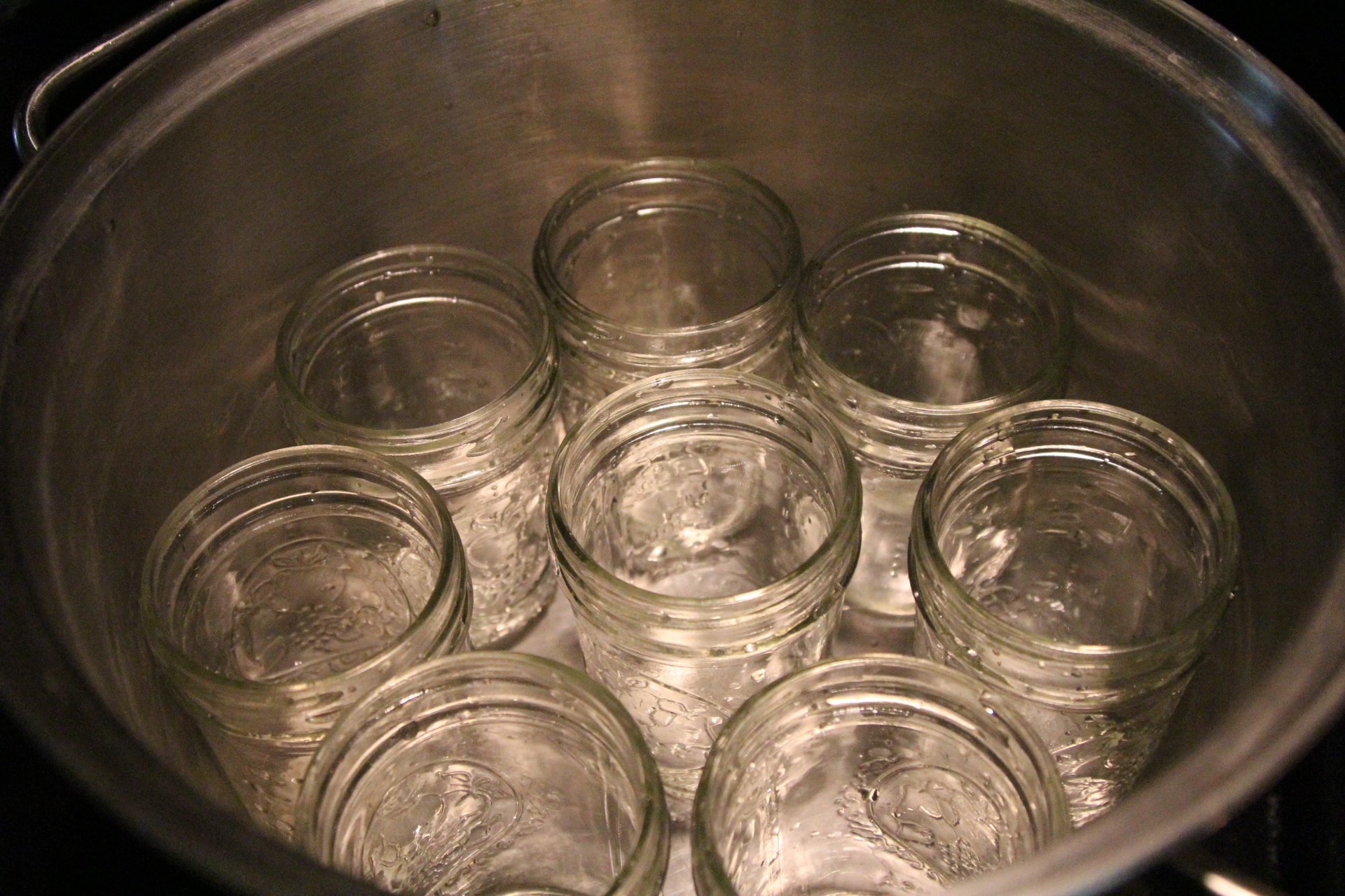 You may need some empty jars as place holder to help keep all the jars upright during the sealing process. Just fill the empties with some water so they don’t tip over. A canning rack fixes this issue, but I don’t own one.