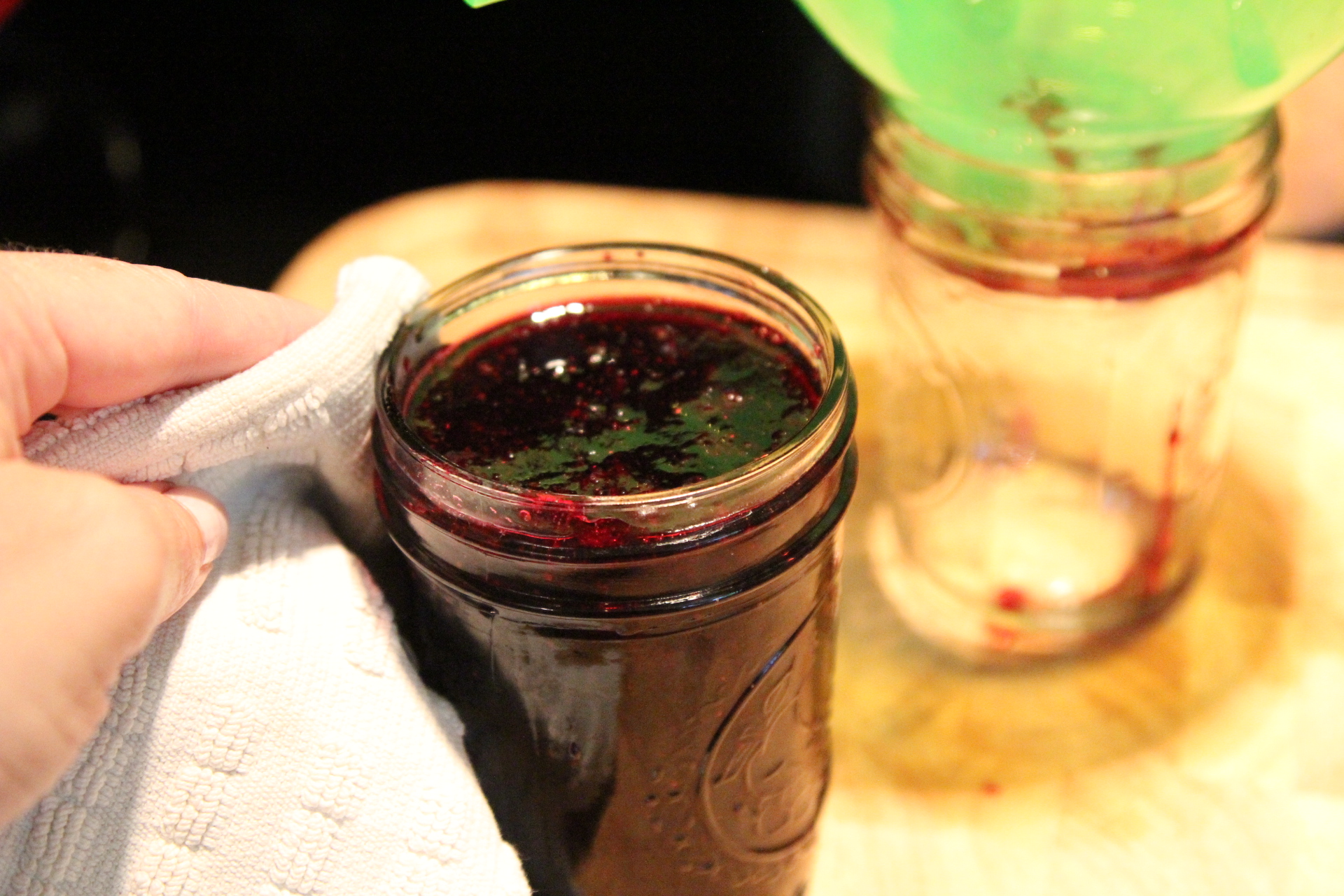 Place the funnel on the next jar so it’s ready for you. Wipe of the top edge of the jar with a clean towel to make sure there’s no moisture.