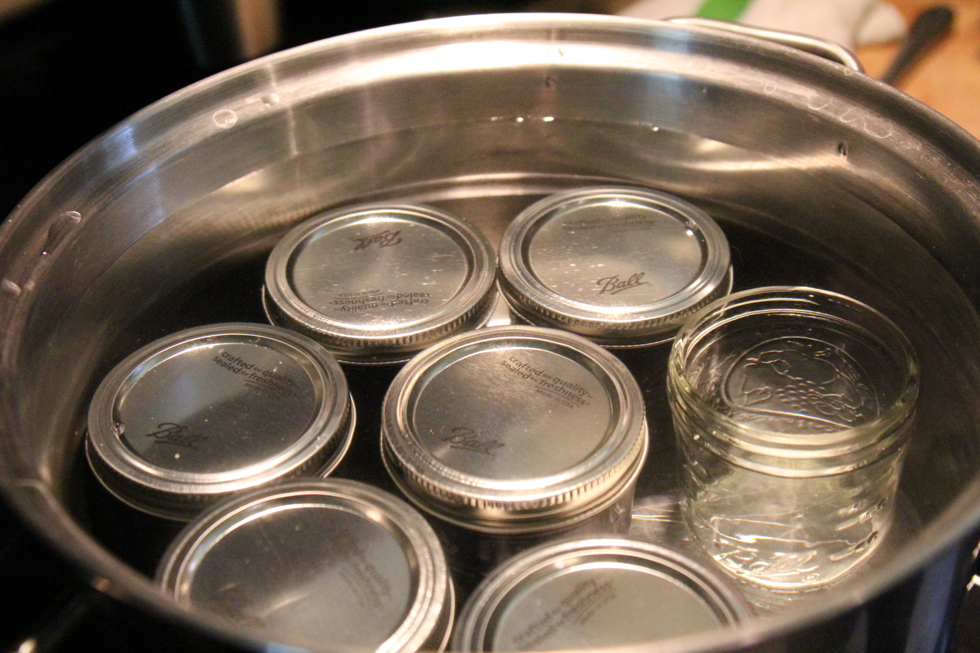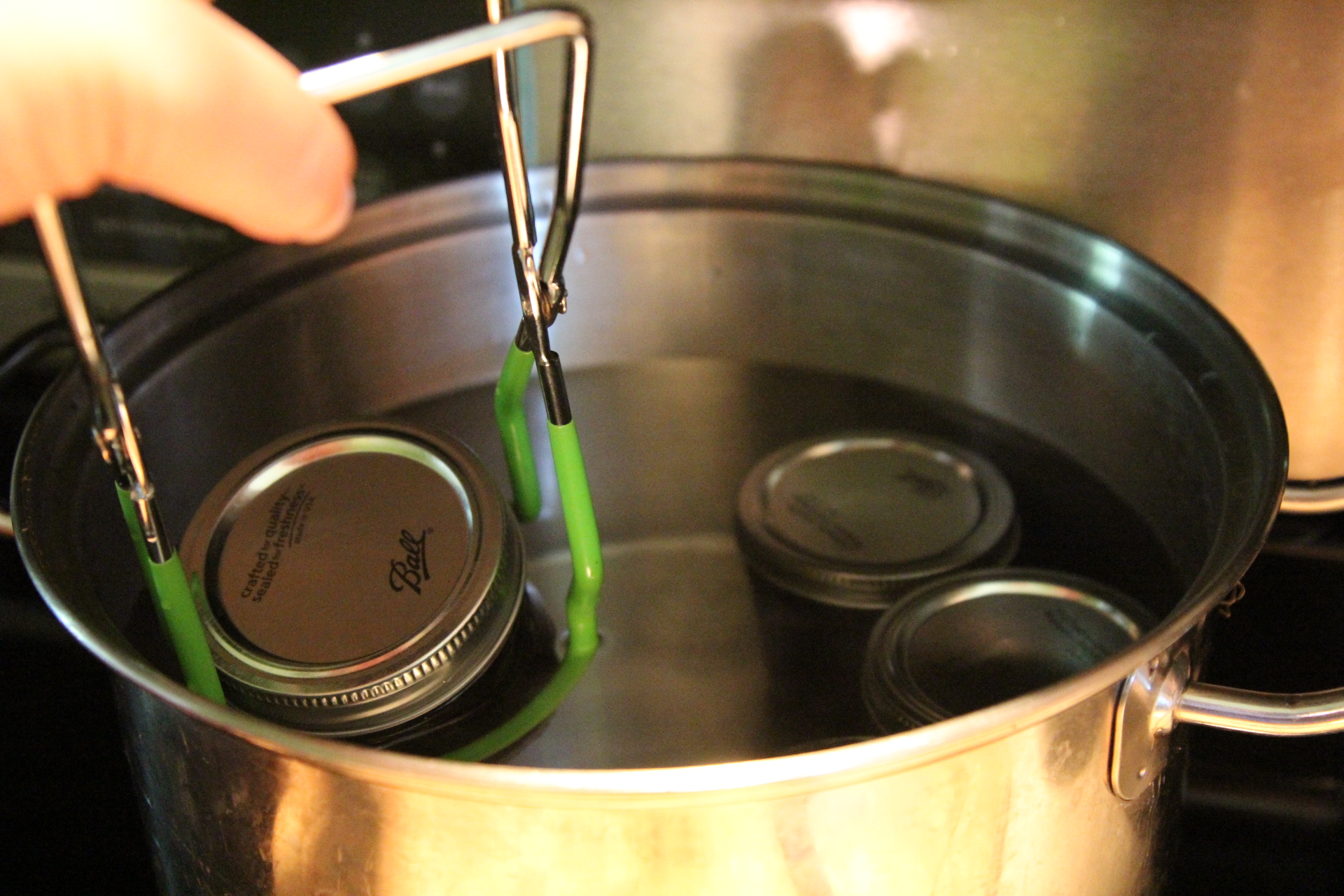 Return jars to pot with warm water and add more water if needed until all jars are barely covered with water. Use empty jars as placeholders to prevent jars tipping if needed.