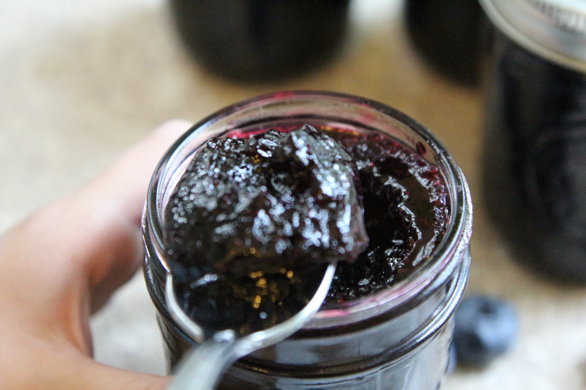 Jars. If you don’t fly through the jam like a bunch of Grizzly bears, you probably want to stick with the 8 oz size jar. In our house, we can get by with the larger 12 oz size jar for our favorite jam (strawberry) because I know we will use it up in plenty of time. I use the smaller 8 oz jars for blueberry just because we don’t use it quite as much as the strawberry. Just depends on our mood. I tell you, though there’s something special about a blueberry bagel, toasted up and then topped with a little cream cheese and then a little homemade blueberry jam to bring it all together. Bring on the blueberry! You can also spoon out a little jam into a bowl, heat it up and drizzle it over ice cream for a yummy treat!