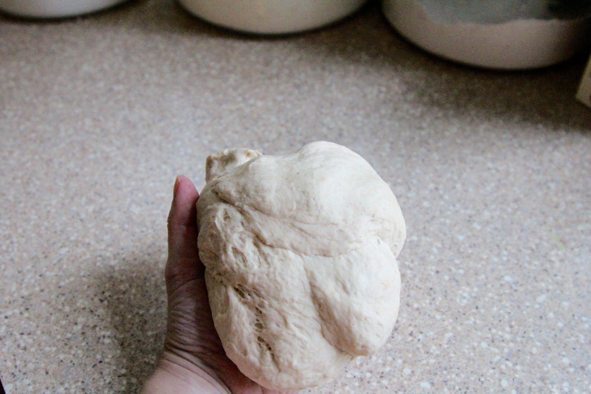 You may need to add in more flour if dough is too sticky, or add in a tiny bit of water and oil if dough seems too crumbly and dry. You want a smooth looking dough.