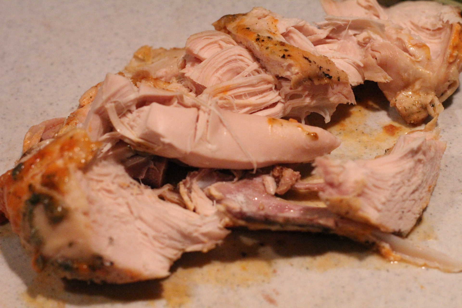 Get yourself some chicken- I think boneless is easiest to deal with, but get whatever you want. I did split chicken breasts this last go around since it was on special so I had a little de boning to do after the chicken was cooked. You could use frozen chicken too, it will just take a little longer to cook.