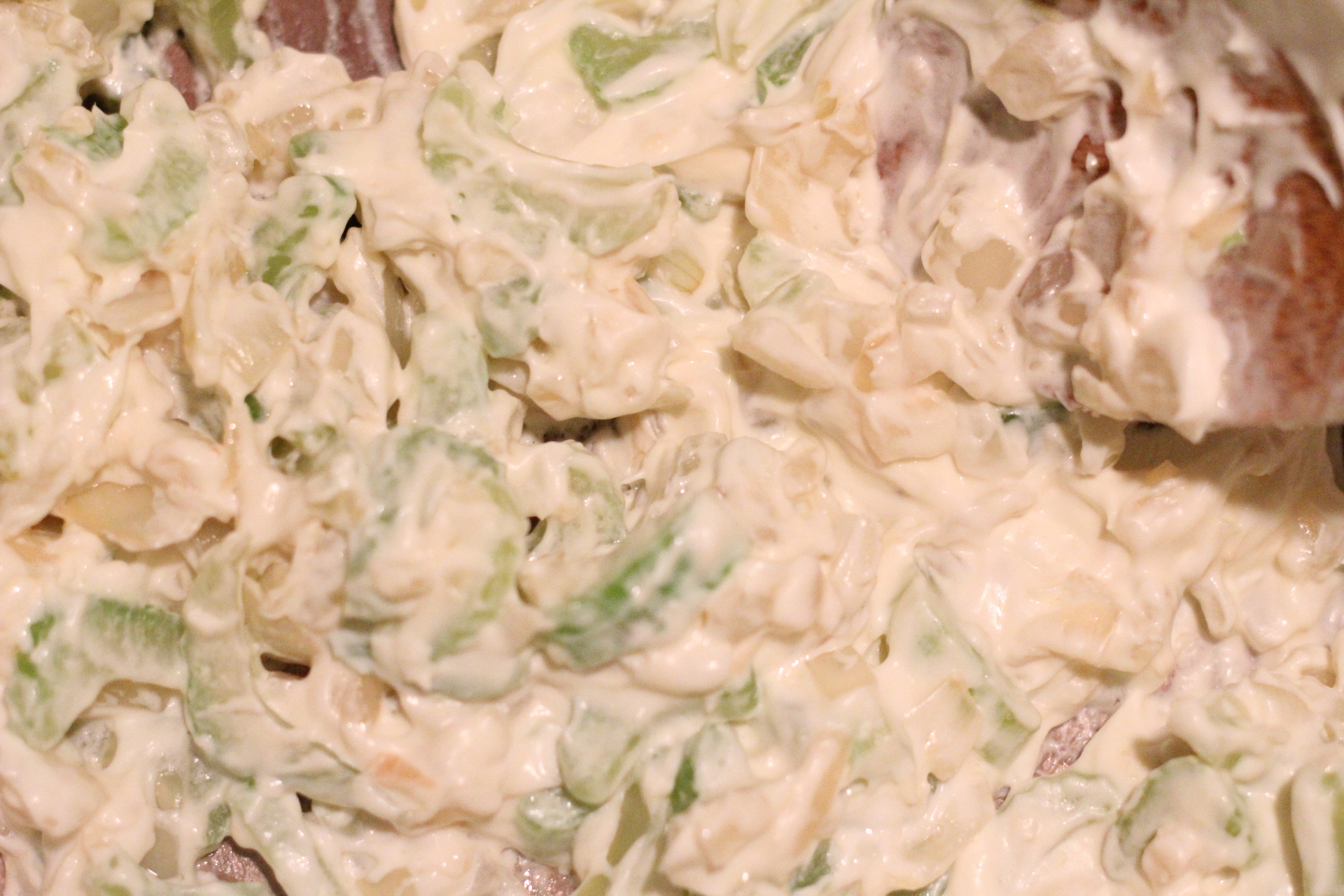 Once the onions are beginning to become translucent, add in the cream cheese.