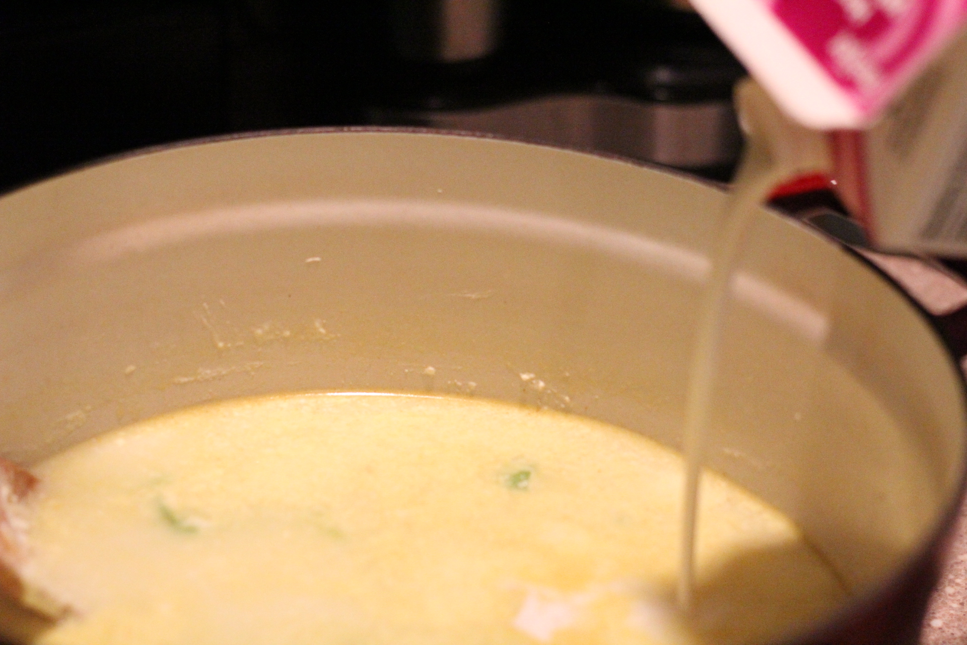 Keep on medium heat, stirring to help melt the cheese and smooth out the soup.