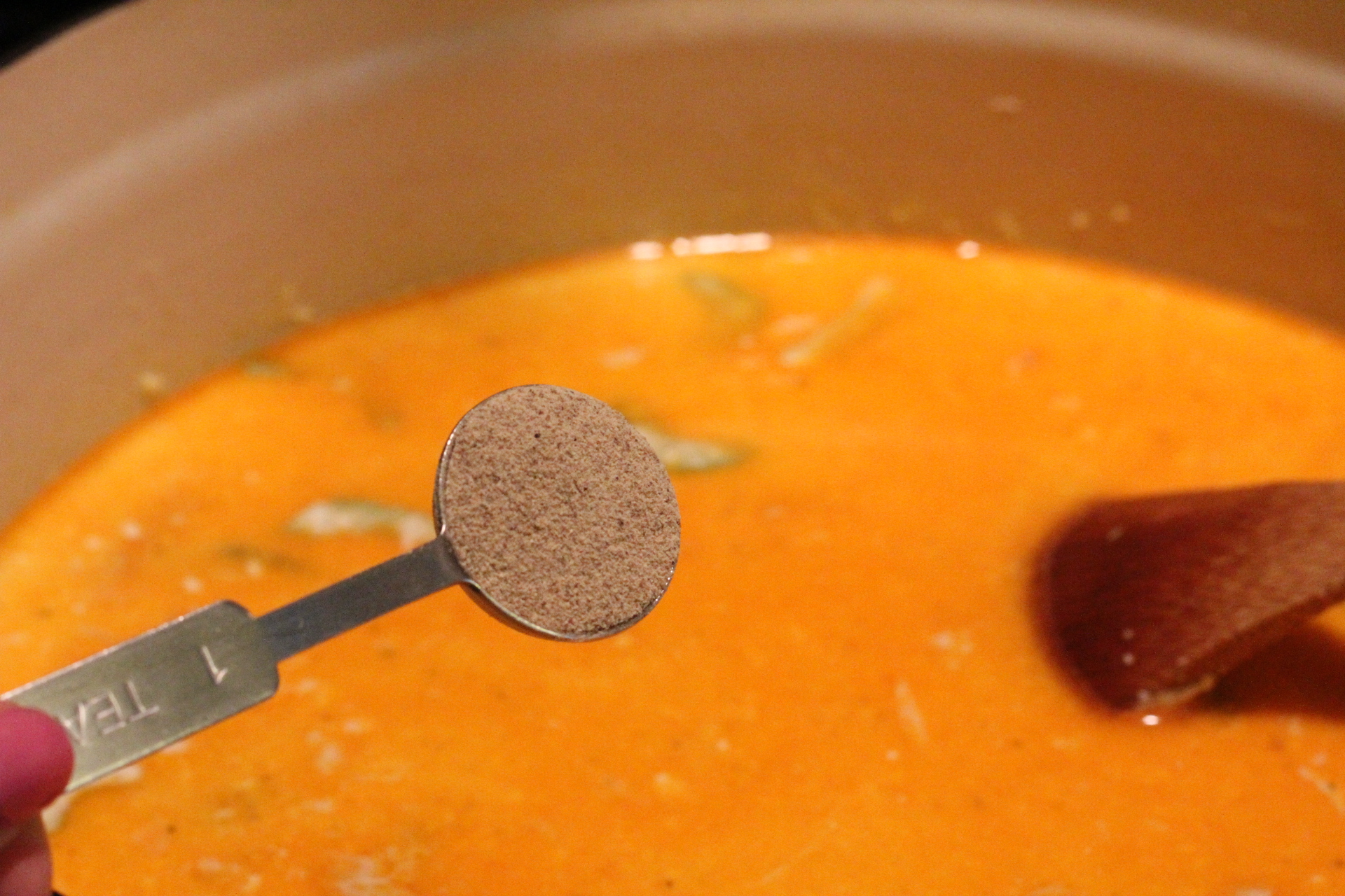 Sprinkle in some salt and pepper. This is one soup where I use white pepper. I love to include it in certain recipes.