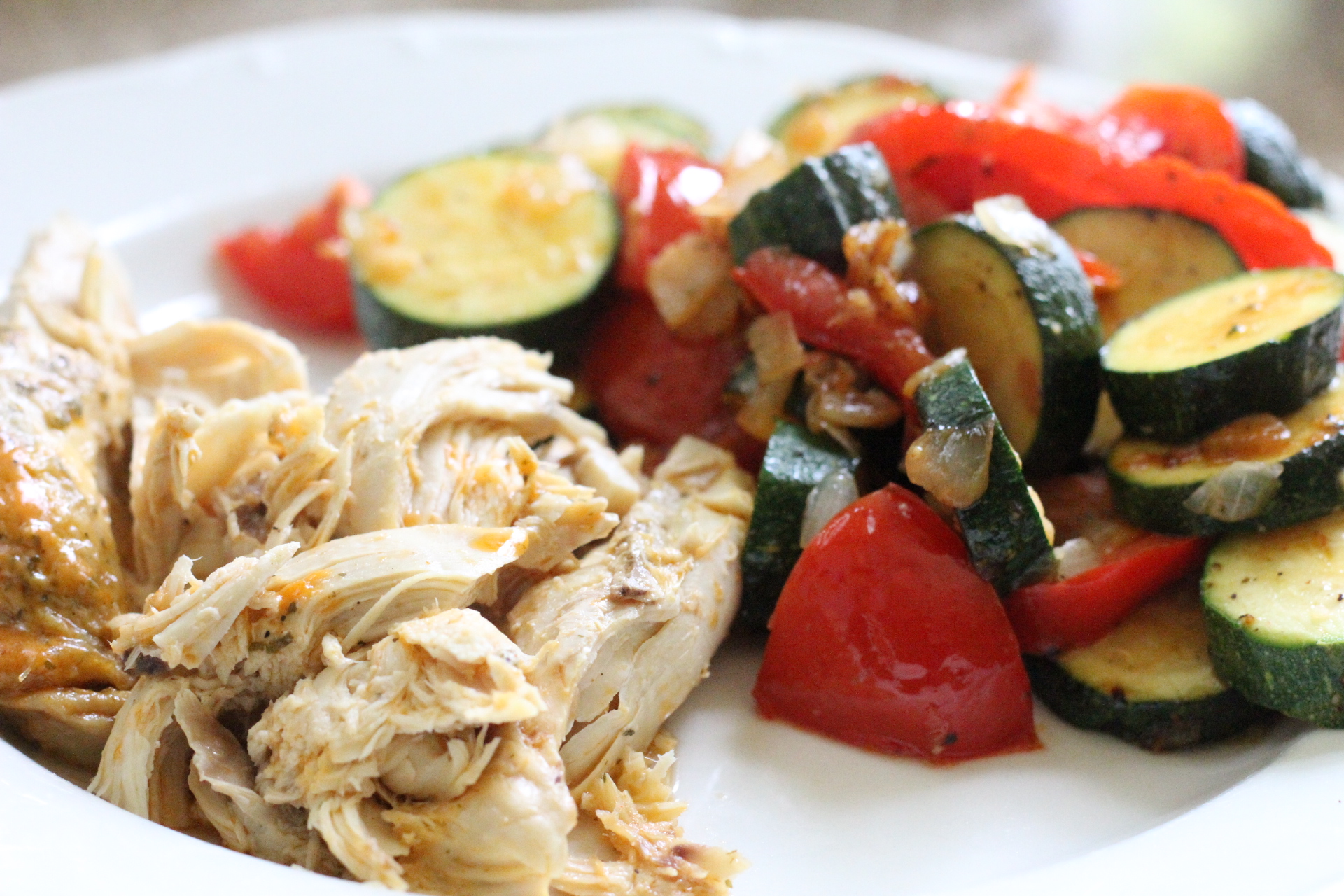 Seal that baby up tight with the lid and let it cook on low for 6-8 hours or whenever that chicken is done. It should be tender enough to just fall apart when you take a fork to it.