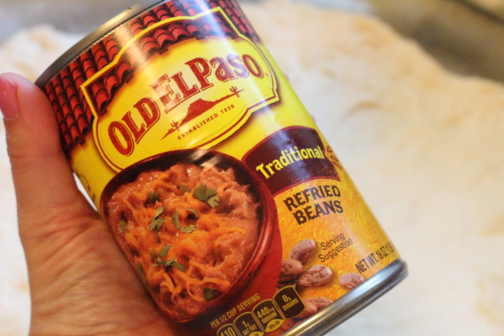 Sauce – 1 Can refried beans or nacho cheese, or combination. You could use ranch if you like too.