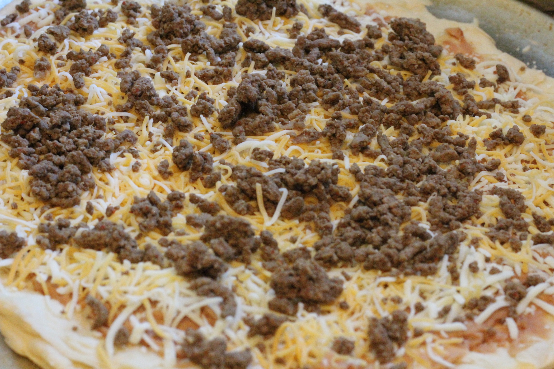 You know how I feel about disappointing pizza in our local area restaurants. Most of the time, I would rather just make homemade pizza to satisfy that craving. That way I can make custom crusts, custom ingredients to please all the pizza experts in my family. Sometimes I go a little crazy and make way too much. Sometimes, I just make one or two. Usually one of our girls throws in a little request for taco pizza, but I don’t always make it. This time, I had everything ready to go and taco pizza was the star of the show. When I make tacos and let’s be real, it’s at least once a week since we never seem to get tired of them and there’s so many different variations you can do. I often will save back some of the beef taco meat in the fridge or freezer, either for taco salads, taco soup, nachos, or . . . TACO PIZZA!