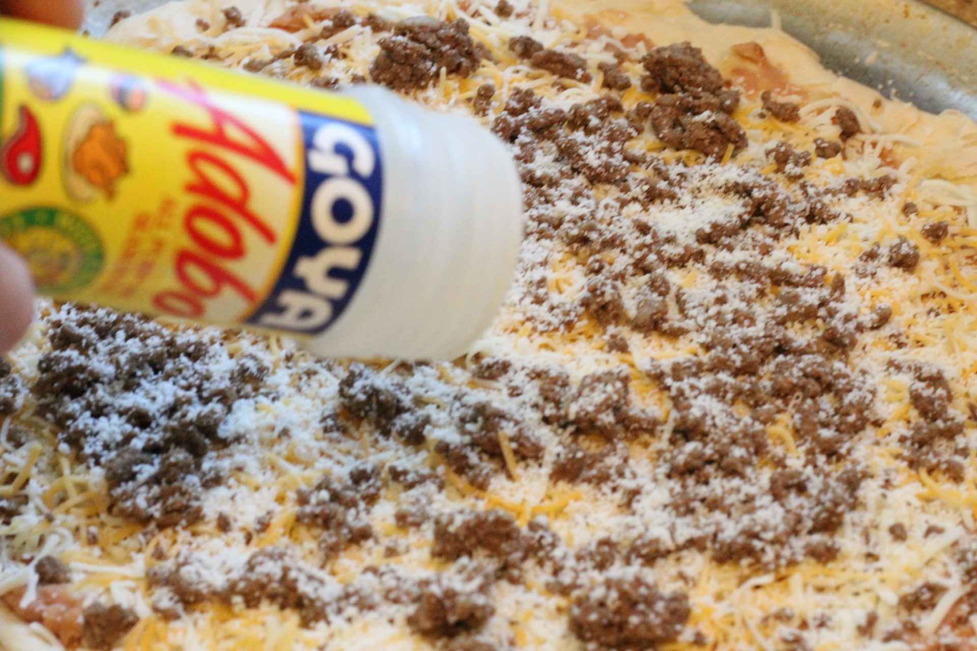 Now, I like to add just a little more seasoning to bring it all up to speed. I like Adobo seasonings by Goya. Any taco flavored seasonings will work, or you could just make your own blend with ground cumin, garlic, and a little salt. Add some cayenne pepper if you like more kick.