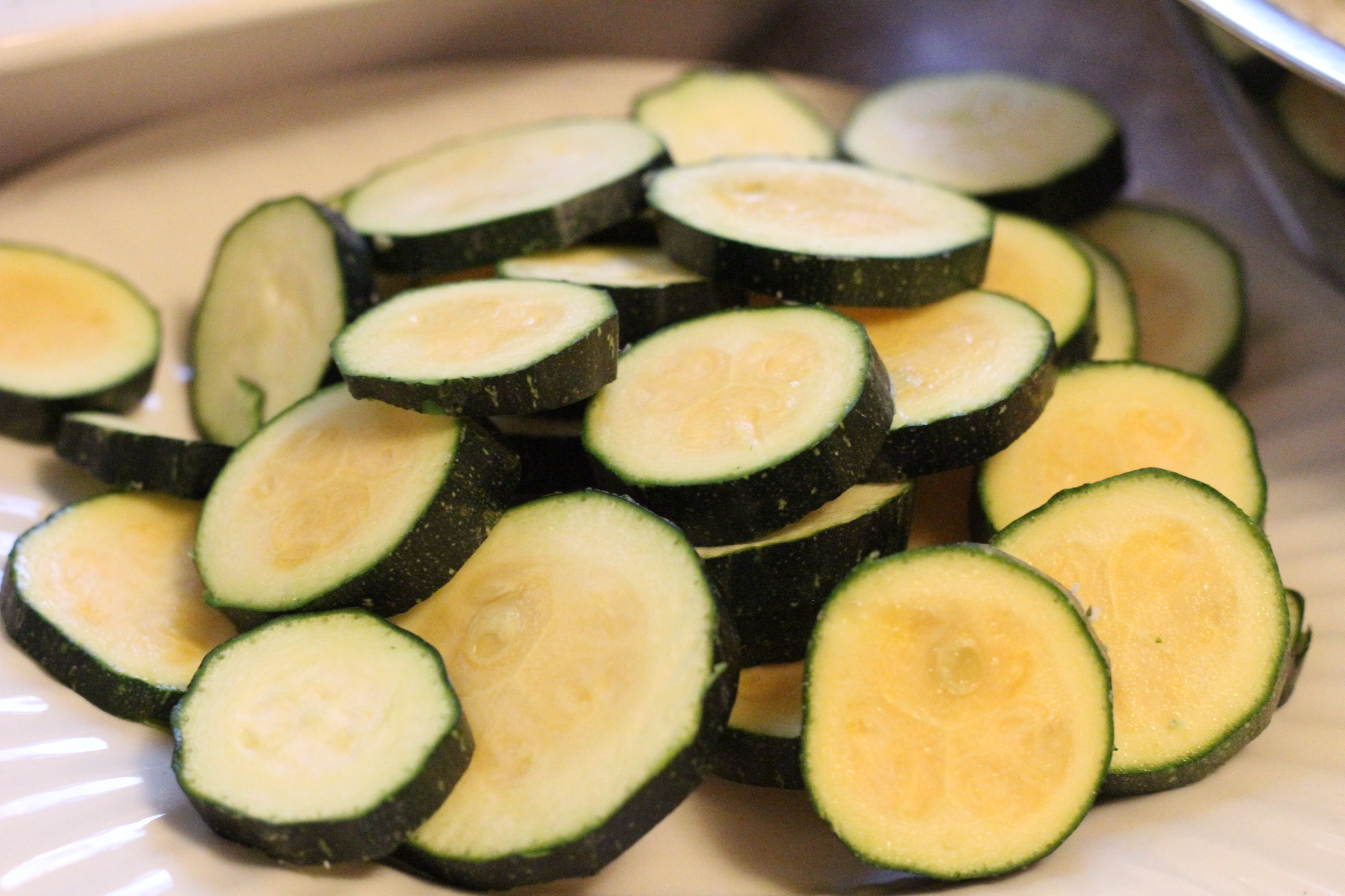 Slice up the zucchini into about 1/2 inch thick (or a little less) round slices.