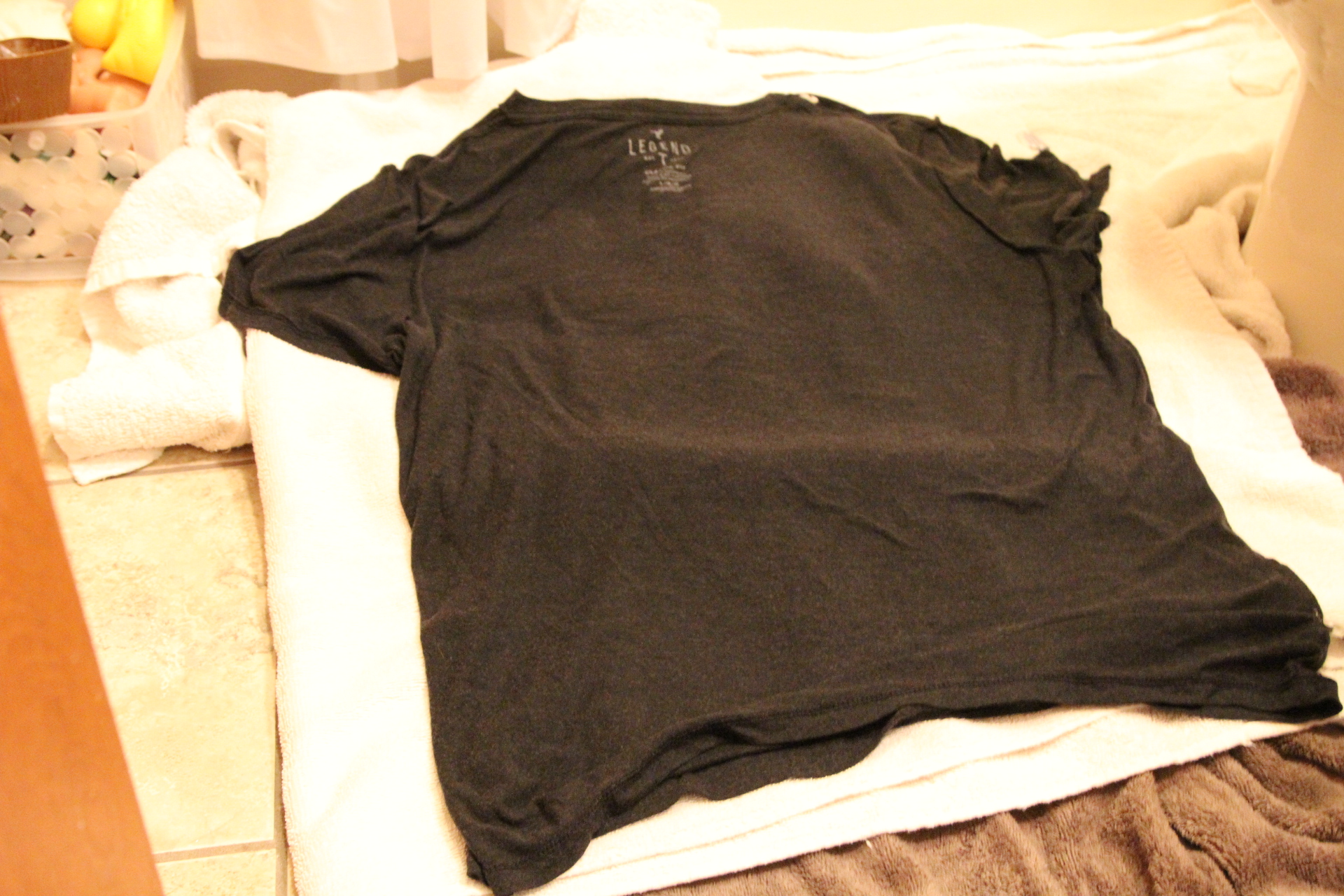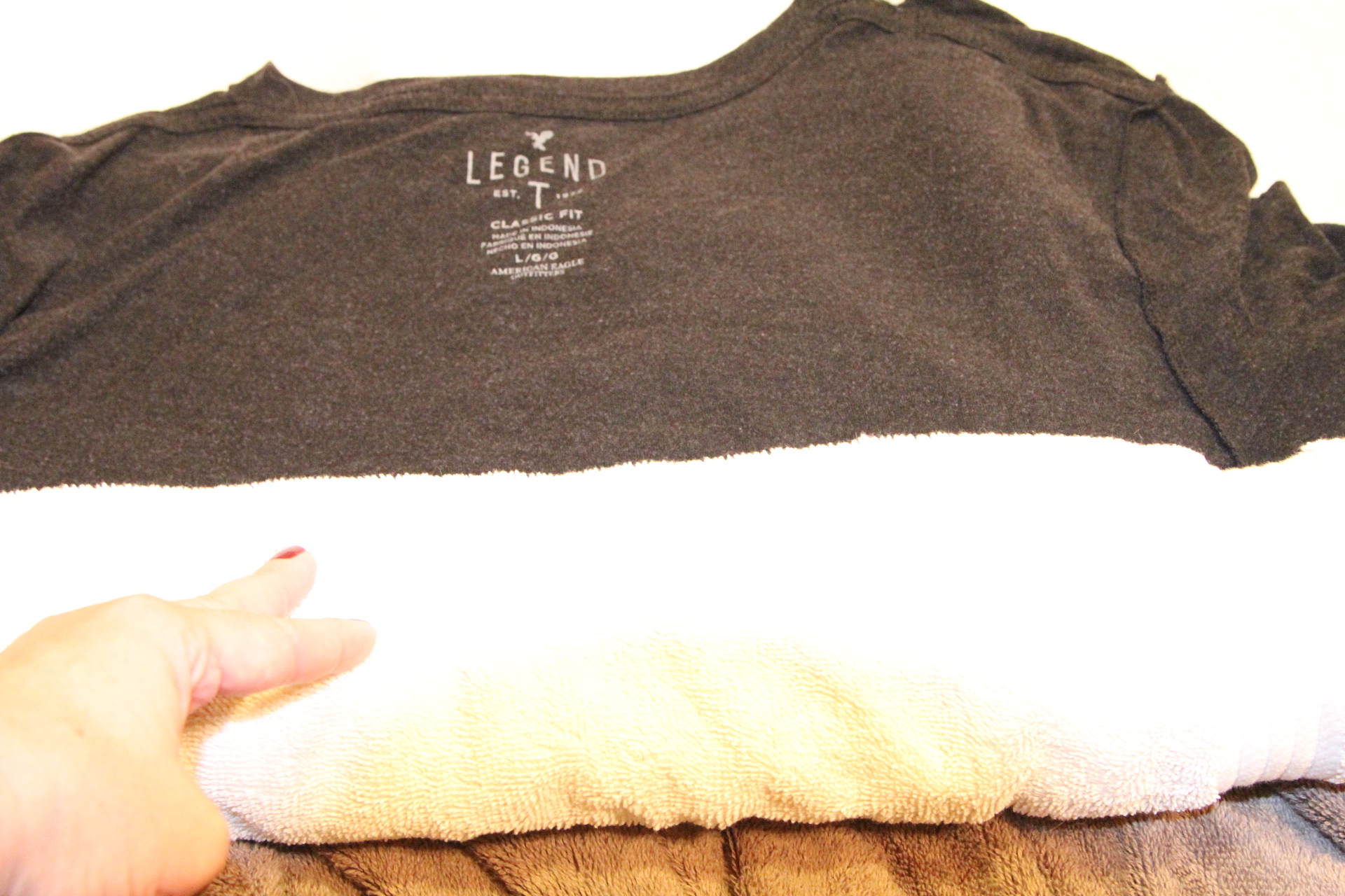 Step Five – Gently roll the shirt/clothing up inside the towel to wring out excess water.