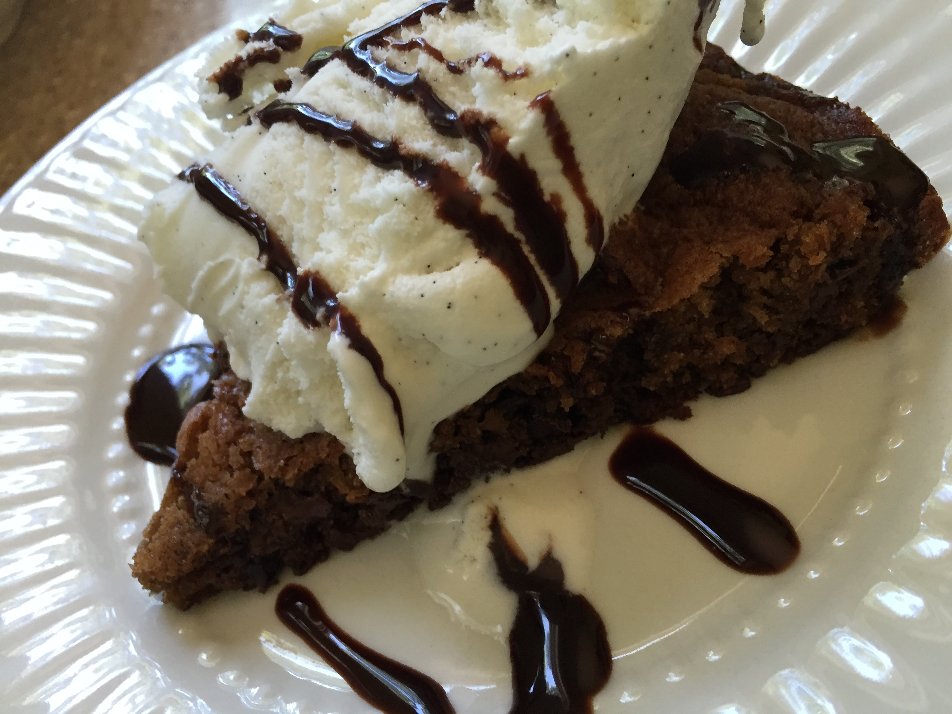 When she came home, we used the dough she made and formed it into a skillet cookie. This is a nice way to make a quick dessert and what I love about it is that you can cut and serve it into how many slices you need and there are no leftovers.